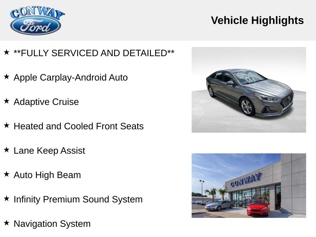 **NO ACCIDENTS NO ISSUES**, **BLUETOOTH HANDS FREE**, **POWER SUNROOF/MOONROOF**, **BACK UP CAMERA**, **LEATHER INTERIOR**, **POWER DRIVER'S SEAT**, **BLIND SPOT MONITOR**, **NAVIGATION**, **FULLY SERVICED AND DETAILED**, Apple Carplay-Android Auto, Adaptive Cruise, Heated and Cooled Front Seats, Lane Keep Assist, Auto High Beam, Infinity Premium Sound System, Sonata Limited, 4D Sedan, 2.4L I4 DGI DOHC 16V ULEV II 185hp, FWD, Black Leather, 4-Wheel Disc Brakes, ABS brakes, Adaptive Cruise Control, Air Conditioning, AM/FM radio: SiriusXM, Automatic Emergency Braking (AEB), Automatic High Beam Assist, Automatic temperature control, Blue Link Telematics Gen 2, Blue Link Telematics Gen 2 w/Guidance, Brake assist, Bumpers: body-color, Compass, Driver door bin, Driver vanity mirror, Dual front impact airbags, Dual front side impact airbags, Dual Zone Auto A/C, Electronic Parking Brake (EPB), Electronic Stability Control, Four wheel independent suspension, Front reading lights, Garage door transmitter: HomeLink, Heated door mirrors, Heated Seats, Heated Steering Wheel, Heated/Ventilated Front Bucket Seats, Knee airbag, Lane Keep Assist System (LKA), Larger Front Brakes, Leather Seating Surfaces, Leather Shift Knob, Leather steering wheel, Limited Ultimate Package 03, Low tire pressure warning, Memory seat, Navigation System, Option Group 06, Outside temperature display, Passenger door bin, Passenger vanity mirror, Power door mirrors, Power driver seat, Power moonroof, Power passenger seat, Power windows, Radio data system, Radio: AM/FM/HD/SiriusXM/MP3 Display Audio, Radio: AM/FM/HD/SiriusXM/MP3 Infinity Prem Audio, Rear window defroster, Remote keyless entry, Smart Cruise Control w/Start/Stop, Sport Front Grille, Steering wheel mounted audio controls, Tachometer, Telescoping steering wheel, Traction control, Turn signal indicator mirrors, Ultimate Package 07, Ventilated front seats.
