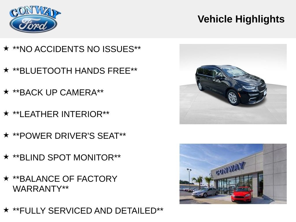**NO ACCIDENTS NO ISSUES**, **BLUETOOTH HANDS FREE**, **BACK UP CAMERA**, **LEATHER INTERIOR**, **POWER DRIVER'S SEAT**, **BLIND SPOT MONITOR**, **BALANCE OF FACTORY WARRANTY**, **FULLY SERVICED AND DETAILED**, Apple Carplay-Android Auto, Remote Start, Rain Sense Wipers, Power Liftgate, Pacifica Touring L, 4D Passenger Van, 3.6L V6 24V VVT, Brilliant Black Crystal Pearlcoat, Black/Alloy/Black Leather, 10.1" Touchscreen Display, 17" x 7.0" Aluminum Wheels, 4-Wheel Disc Brakes, ABS brakes, Adaptive Cruise Control, Air Conditioning, AM/FM radio: SiriusXM, Apple CarPlay/Android Auto, Automatic temperature control, Brake assist, Bumpers: body-color, Compass, Delay-off headlights, Driver door bin, Driver vanity mirror, Dual front impact airbags, Dual front side impact airbags, Dual Zone Auto A/C, Electronic Stability Control, Four wheel independent suspension, Front fog lights, Front reading lights, Garage door transmitter, Heated door mirrors, Heated Seats, Knee airbag, Low tire pressure warning, Memory seat, Outside temperature display, Panic alarm, ParkView Rear Back-Up Camera, Passenger door bin, Perforated Leather Trim Bucket Seats, Power door mirrors, Power driver seat, Power Liftgate, Power windows, Quick Order Package 27L, Radio data system, Radio: Uconnect 5 w/10.1" Display, Rain sensing wipers, Rear air conditioning, Rear reading lights, Rear window defroster, Rear window wiper, Reclining 3rd row seat, Remote keyless entry, SiriusXM Radio Service, Spoiler, Steering wheel mounted audio controls, Tachometer, Telescoping steering wheel, Trip computer, Variably intermittent wipers. Priced below KBB Fair Purchase Price!