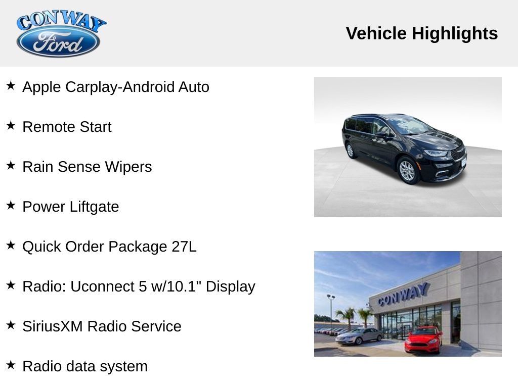 19/28 City/Highway MPG Brilliant Black Crystal Pearlcoat 2022 Chrysler Pacifica Touring L FWD 9-Speed 948TE Automatic 3.6L V6 24V VVT