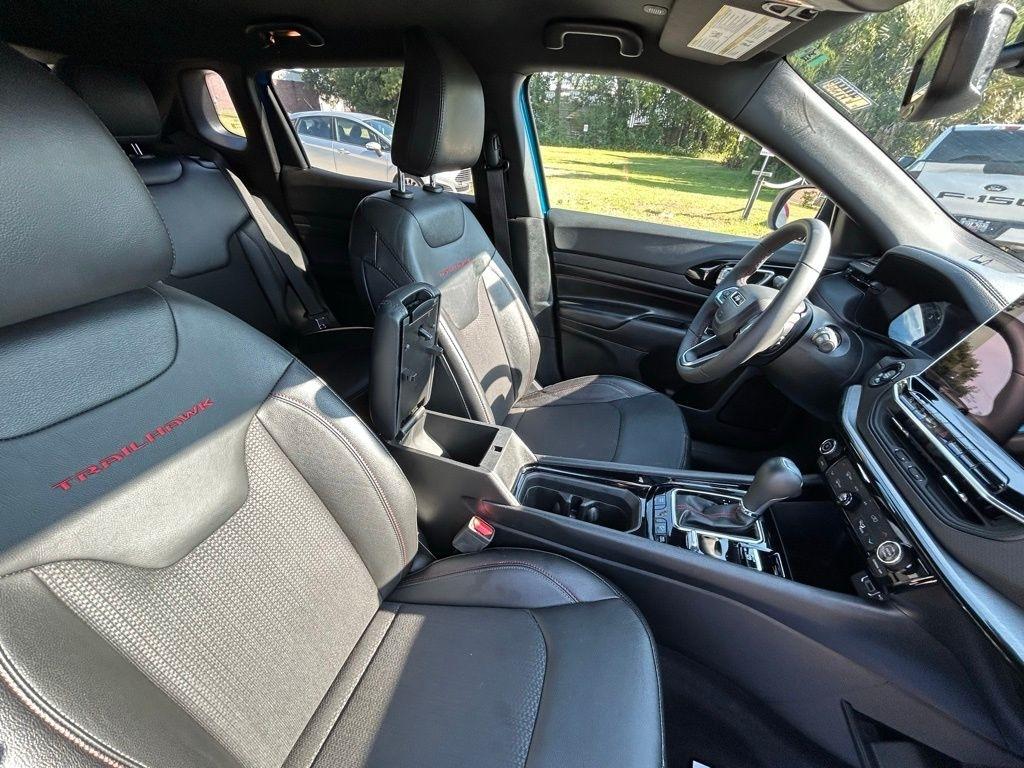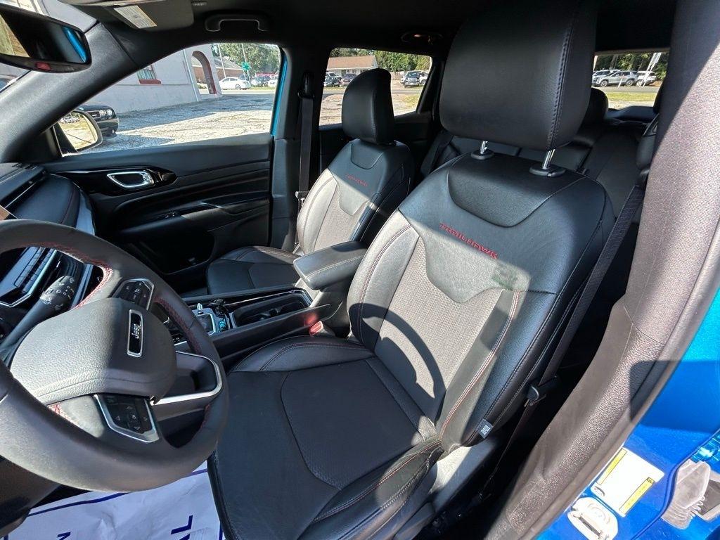 **ONE OWNER**, **NO ACCIDENTS NO ISSUES**, **BLUETOOTH HANDS FREE**, **BACK UP CAMERA**, **BLIND SPOT MONITOR**, **BALANCE OF FACTORY WARRANTY**, **FULLY SERVICED AND DETAILED**, Apple Carplay-Android Auto, Active LaneManagement System, ParkSense Rear ParkAssist System, Adaptive CruiseControl, OffRoad Suspension w/SelecTerrain System, Fuel Tank SkidPlate Shield Front Suspension SkidPlate, 10.1Inch Touchscreen Display, Compass Trailhawk, 4D Sport Utility, 2.0L I4 DOHC, 4WD, Hydro Blue Pearlcoat, 10.1" Touchscreen Display, 4-Wheel Disc Brakes, ABS brakes, Adaptive Cruise Control, Air Conditioning, AM/FM radio: SiriusXM, Auto High-beam Headlights, Automatic temperature control, Brake assist, Bumpers: body-color, Compass, Delay-off headlights, Driver door bin, Driver vanity mirror, Dual front impact airbags, Dual front side impact airbags, Dual-Zone Climate, Electronic Stability Control, Four wheel independent suspension, Front Bucket Seats, Front fog lights, Front reading lights, Fully automatic headlights, Heated door mirrors, Knee airbag, Leather Shift Knob, Leather steering wheel, Low tire pressure warning, Outside temperature display, Panic alarm, ParkView Rear Back-Up Camera, Passenger door bin, Passenger vanity mirror, Power door mirrors, Power windows, Premium Cloth/Leather Trim Bucket Seats, Quick Order Package 29E, Radio: Uconnect 5 w/10.1" Display, Rear window defroster, Rear window wiper, Remote keyless entry, Spoiler, Steering wheel mounted audio controls, Tachometer, Telescoping steering wheel, Traction control, Trip computer, Variably intermittent wipers, Wheels: 17" x 6.5" Painted Black Aluminum. Priced below KBB Fair Purchase Price!