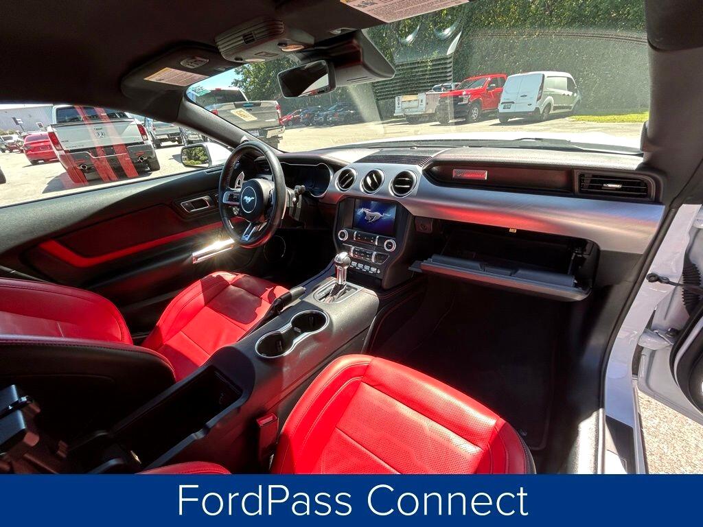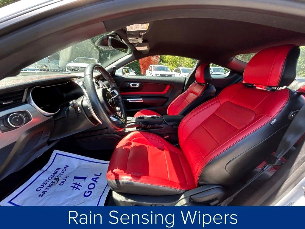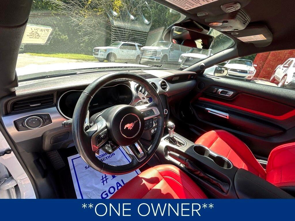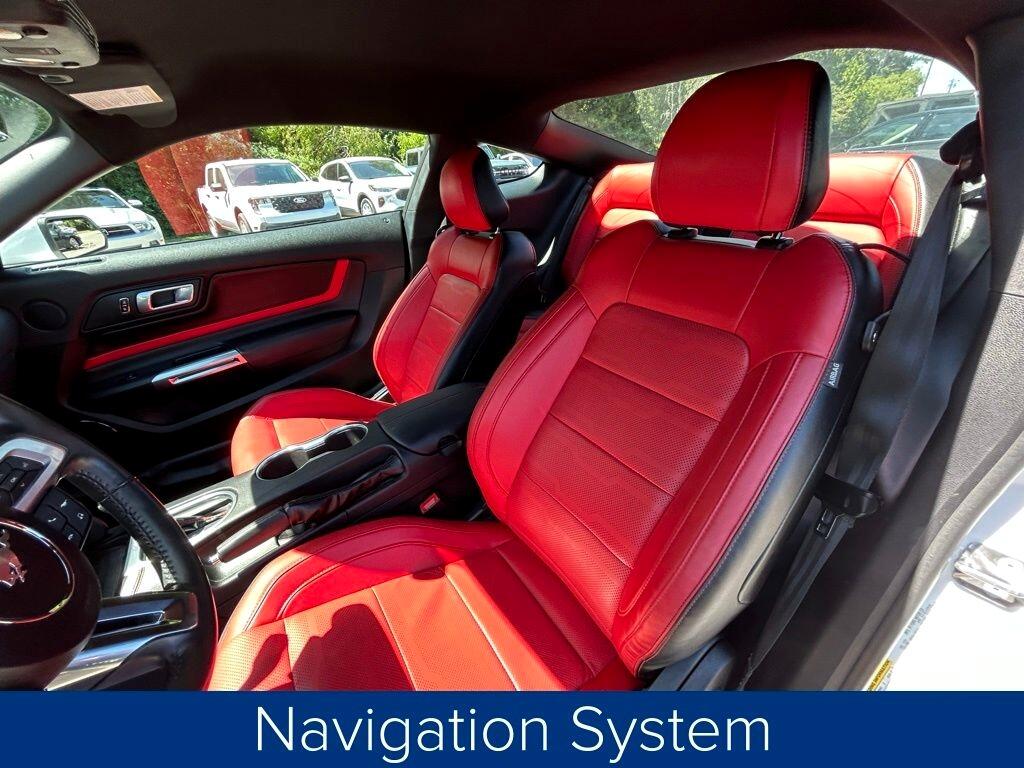 **ONE OWNER**, **NO ACCIDENTS NO ISSUES**, **BLUETOOTH HANDS FREE**, **BACK UP CAMERA**, **LEATHER INTERIOR**, **POWER DRIVER'S SEAT**, **POWER PASSENGER SEAT**, **NAVIGATION**, **BALANCE OF FACTORY WARRANTY**, **FULLY SERVICED AND DETAILED**, Apple Carplay-Android Auto, Remote Start, Adaptive Cruise Control, FordPass Connect, Ford CoPilot360, Rear Parking Sensors, Track Apps, Rain Sensing Wipers, Mustang GT Premium, 2D Coupe, 5.0L V8 Ti-VCT, 10-Speed Automatic, Oxford White, Showstopper Red Leather, 12" LCD Digital Instrument Cluster w/MyColor, 20" Wheels, 3.15 Limited Slip Rear Axle Ratio, 4-Wheel Disc Brakes, ABS brakes, Adaptive Cruise Control, Air Conditioning, AM/FM Stereo, Auto High-beam Headlights, Automatic temperature control, Brake assist, Bumpers: body-color, Climate Controlled Heated/Cooled Front Seats, Compass, Delay-off headlights, Driver door bin, Driver vanity mirror, Dual front impact airbags, Dual front side impact airbags, Dual Zone Auto A/C, Electronic Stability Control, Equipment Group 401A, Exterior Parking Camera Rear, Ford Safe & Smart Package, Four wheel independent suspension, Front fog lights, Front reading lights, Fully automatic headlights, Heated Steering Wheel, Integrated Turn Signals, Knee airbag, Leather Shift Knob, Leather-Trimmed Bucket Seats, Leather-Trimmed Bucket Seats w/Color Accents, Low tire pressure warning, Memory Driver Seat, Mirrors & Ambient Lighting, Navigation System, Panic alarm, Passenger door bin, Passenger vanity mirror, Power door mirrors, Power driver seat, Power windows, Radio data system, Rain sensing wipers, Rear Parking Sensors, Rear window defroster, Remote keyless entry, SiriusXM Radio, Steering wheel mounted audio controls, SYNC 3 Communications & Entertainment System, Tachometer, Telescoping steering wheel, Trip computer, Variably intermittent wipers, Voice-Activated Touch-Screen Navigation System, Wheels: 20" x 9" Premium-Painted Aluminum.