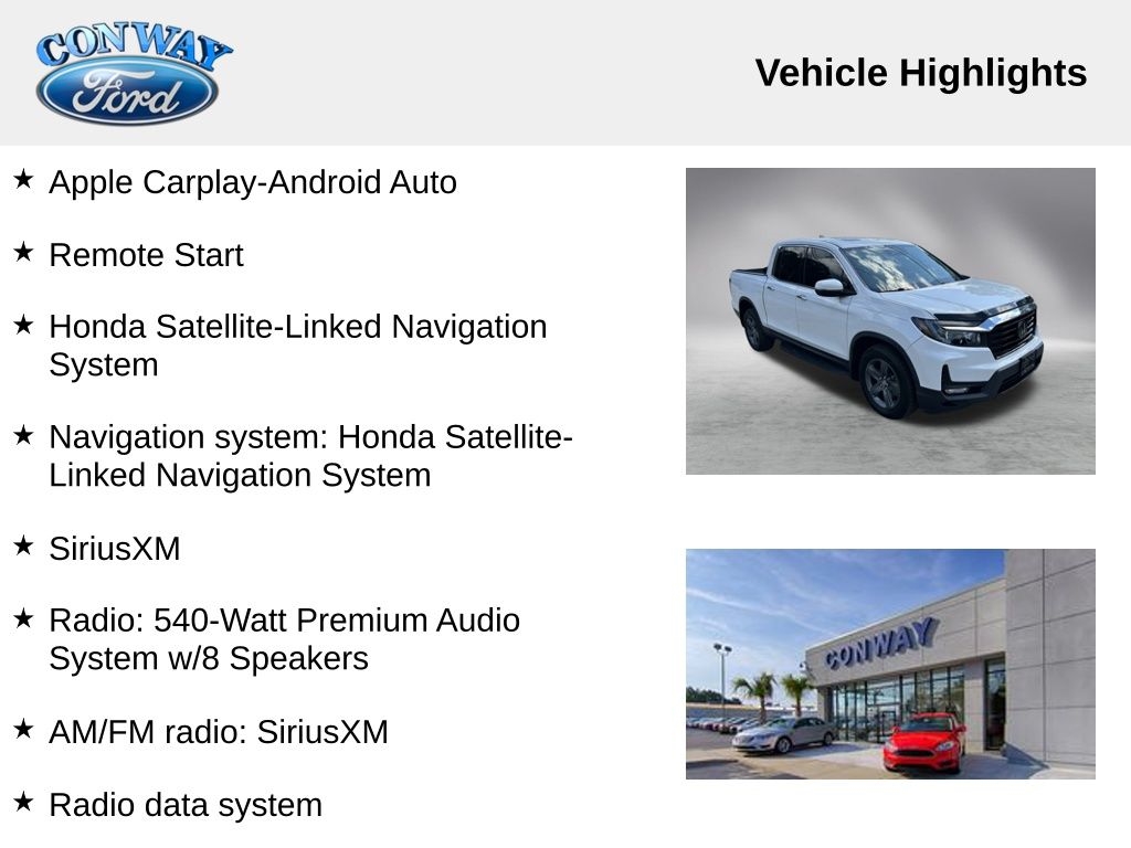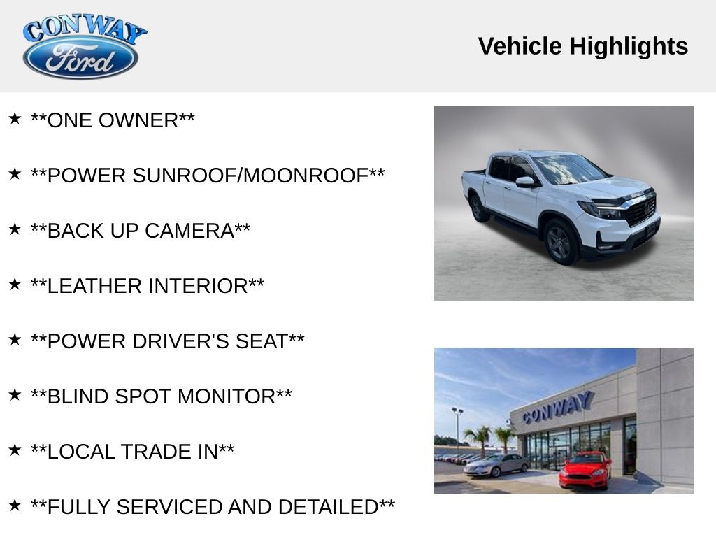 **ONE OWNER**, **POWER SUNROOF/MOONROOF**, **BACK UP CAMERA**, **LEATHER INTERIOR**, **POWER DRIVER'S SEAT**, **BLIND SPOT MONITOR**, **LOCAL TRADE IN**, **FULLY SERVICED AND DETAILED**, Apple Carplay-Android Auto, Remote Start, Ridgeline RTL-E, 4D Crew Cab, 3.5L V6 SOHC i-VTEC 24V, AWD, Black Leather, 4-Wheel Disc Brakes, 8 Speakers, ABS brakes, Adaptive Cruise Control, Air Conditioning, AM/FM radio: SiriusXM, Apple CarPlay/Android Auto, Auto High-beam Headlights, Automatic temperature control, Blind Spot Information (BSI) System warning, Bluetooth® Hands-Free Link, Brake assist, Bumpers: body-color, Compass, Delay-off headlights, Driver door bin, Driver vanity mirror, Dual front impact airbags, Dual front side impact airbags, Dual Zone Auto A/C, Electronic Stability Control, Exterior Parking Camera Rear, Four wheel independent suspension, Front fog lights, Front reading lights, Fully automatic headlights, Garage door transmitter: HomeLink, Heated door mirrors, Heated Rear Seats, Heated steering wheel, Honda Satellite-Linked Navigation System, Low tire pressure warning, Memory seat, Navigation system: Honda Satellite-Linked Navigation System, Outside temperature display, Panic alarm, Passenger door bin, Passenger vanity mirror, Power door mirrors, Power driver seat, Power moonroof, Power passenger seat, Power windows, Radio data system, Radio: 540-Watt Premium Audio System w/8 Speakers, Rear air conditioning, Rear step bumper, Rear window defroster, Remote keyless entry, SiriusXM, Steering wheel mounted audio controls, Tachometer, Telescoping steering wheel, Traction control, Trip computer, Turn signal indicator mirrors, Variably intermittent wipers. Priced below KBB Fair Purchase Price!