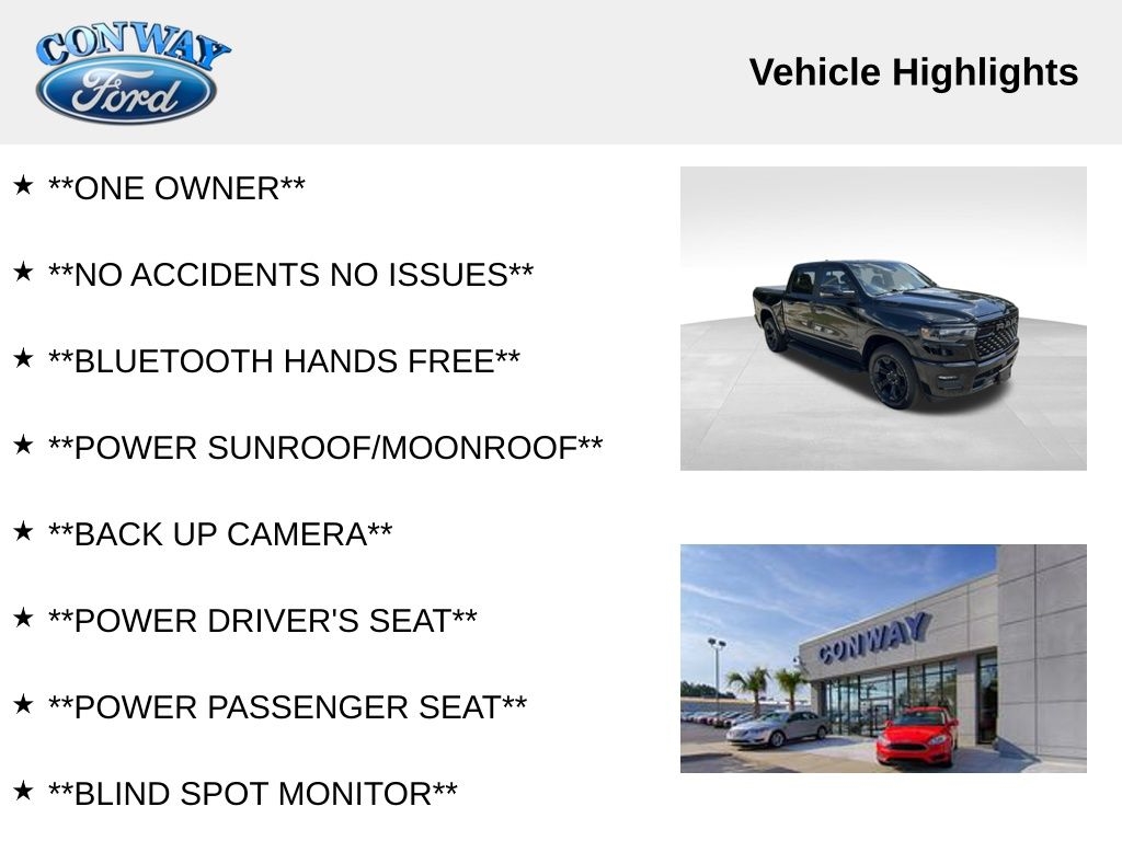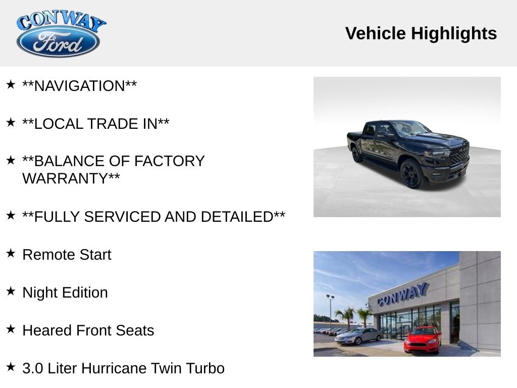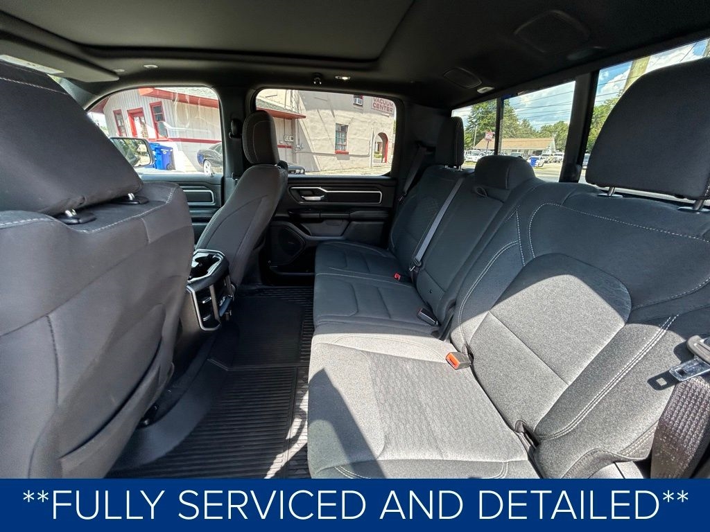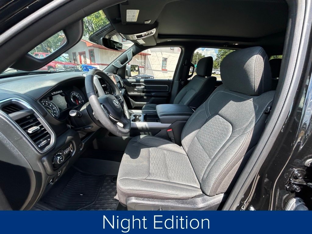 **ONE OWNER**, **NO ACCIDENTS NO ISSUES**, **BLUETOOTH HANDS FREE**, **POWER SUNROOF/MOONROOF**, **BACK UP CAMERA**, **POWER DRIVER'S SEAT**, **POWER PASSENGER SEAT**, **BLIND SPOT MONITOR**, **NAVIGATION**, **LOCAL TRADE IN**, **BALANCE OF FACTORY WARRANTY**, **FULLY SERVICED AND DETAILED**, Remote Start, Night Edition, Heared Front Seats, 3.0 Liter Hurricane Twin Turbo, Spray-in Mopar Bedliner, Panoramic Sunroof, 1500 Big Horn/Lone Star, 4D Crew Cab, 3.0L I6, 4WD, Diamond Black Crystal Pearlcoat, 115V Auxiliary Power Outlet, 115V Auxiliary Rear Power Outlet, 12" Touchscreen Display, 2nd Row In Floor Storage Bins, 3 Rear Seat Head Restraints, 3.92 Rear Axle Ratio, 4 Way Front Headrests, 4-Wheel Disc Brakes, 400W Inverter, 4G LTE Wi-Fi Hot Spot, 9 Amplified Speakers w/Subwoofer, ABS brakes, Accent Color Door Handles, Accent Color Premium Power Mirrors, Accent Color Tailgate Handle, Air Conditioning ATC w/Dual Zone Control, Anti-Spin Differential Rear Axle, Apple CarPlay/Android Auto, Auto High-beam Headlights, Auto Power-Folding Mirrors, Auto-Dimming Exterior Driver Mirror, Auto-Dimming Rear-View Mirror, Bed Utility Group, Big Horn Level 2 Equipment Group, Black Exterior Mirrors, Black Exterior Truck Badging, Black Headlamp Bezels, Black Interior Accents, Black Painted Exterior Mirrors Caps, Black Premium Power Mirrors, Black Tail Lamp Bezels, Black Trailer Tow Power Mirrors, Body Color Front Bumper, Body Color Rear Bumper w/Step Pads, Brake assist, Bucket Seats, Cluster 7.0" TFT Color Display, Compass, Configurable Drive Mode, Connected Travel & Traffic Services, Connectivity - US/Canada, Convex Wide-Angle Exterior Mirror Insert, Cruise Control, Delay-off headlights, Deluxe Cloth Bucket Seats, Dome Dual LED Reading Lamp, Driver door bin, Dual front impact airbags, Dual front side impact airbags, Dual Rear Exhaust w/Bright Tips, Dual-Pane Panoramic Sunroof, Electronic Stability Control, Exterior 115V AC Outlet, Exterior Mirrors Courtesy Lamps, Exterior Mirrors w/Heating Element, Exterior Mirrors w/Supplemental Signals, Front fog lights, Front reading lights, Front Seat Back Map Pockets, Front wheel independent suspension, Full Length Floor Console, Fully automatic headlights, Glove Box Lamp, GPS Antenna Input, GPS Navigation, Grille Black Surround Black Mesh, HD Radio, Heated door mirrors, Heated Front Seats, Heated Steering Wheel, Integrated Voice Command w/Bluetooth, Leather Wrapped Steering Wheel, LED Dome Lamp w/On/Off Switch, LED Footwell Lighting, Low tire pressure warning, Manual Adjust 4-Way Front Passenger Seat, Manual Folding Exterior Mirrors, Manual Telescoping Mirrors, Media Hub w/2 Charge Only USBs, Mirror Clearance/Running Lights, MOPAR 4 Adjustable Cargo Tie-Down Hooks, Mopar Black Tubular Side Steps, MOPAR Front & Rear Rubber Floor Mats, MOPAR Spray In Bedliner, Night Edition, Outside temperature display, Overhead LED Lamps, Panic alarm, ParkView Rear Back-Up Camera, Passenger door bin, Pick-Up Box Lighting, Power 2-Way Driver Lumbar Adjust, Power Adjust 8-Way Driver Seat, Power Adjustable Pedals, Power door mirrors, Power windows, Power-Adjustable Convex Aux Mirrors, Premium Overhead Console, Quick Order Package 21Z Big Horn, Radio: Uconnect 5 Nav w/12.0" Display, RAM Grille Badge - Black, RAM Grille Badge - Chrome, Rear 60/40 Folding Seat, Rear Center Armrest, Rear Power Sliding Window, Rear step bumper, Rear Window Defroster, Remote keyless entry, Remote Tailgate Release, Security Alarm, SiriusXM w/360L, Steering Wheel Mounted Audio Controls, Sun Visors w/Illuminated Vanity Mirrors, Tachometer, Telescoping steering wheel, Traction control, Trailer Brake Control, Trailer Reverse Steering Control, Trailer Tire Pressure Monitoring System, Trailer Tow Mirrors, Trailer Tow Package, Trip computer, Universal Garage Door Opener, USB Host Flip, Variably intermittent wipers, Wheels: 20" x 9.0" Aluminum Painted Clad.