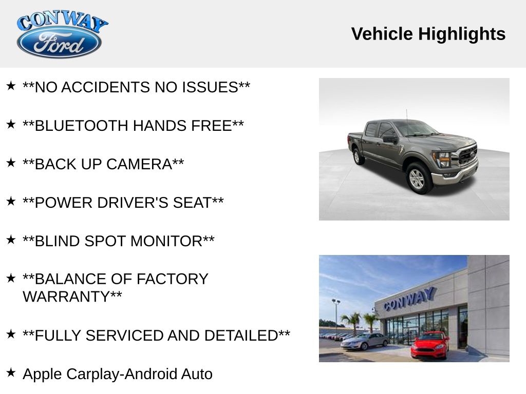 **NO ACCIDENTS NO ISSUES**, **BLUETOOTH HANDS FREE**, **BACK UP CAMERA**, **POWER DRIVER'S SEAT**, **BLIND SPOT MONITOR**, **BALANCE OF FACTORY WARRANTY**, **FULLY SERVICED AND DETAILED**, Apple Carplay-Android Auto, FordPass Connect, Power Tailgate Lock, Lane Keep Assist, Back Up Sensors, F-150 XLT, 4D SuperCrew, 5.0L V8, 4WD, Gray Metallic, 4-Wheel Disc Brakes, 8-Way Power Driver's Seat w/Power Lumbar, ABS brakes, Air Conditioning, Auto High-beam Headlights, Brake assist, Bumpers: chrome, Compass, Delay-off headlights, Driver door bin, Driver vanity mirror, Dual front impact airbags, Dual front side impact airbags, Electronic Stability Control, Exterior Parking Camera Rear, Front fog lights, Front reading lights, Front wheel independent suspension, Fully automatic headlights, GVWR: 7,050 lbs Payload Package, Heated door mirrors, Low tire pressure warning, Outside temperature display, Panic alarm, Passenger door bin, Passenger vanity mirror, Power door mirrors, Power windows, Radio data system, Radio: AM/FM Stereo w/6 Speakers, Remote keyless entry, Steering wheel mounted audio controls, SYNC 4, Tachometer, Telescoping steering wheel, Traction control, Trip computer, Variably intermittent wipers, Wheels: 17" Silver Painted Aluminum.