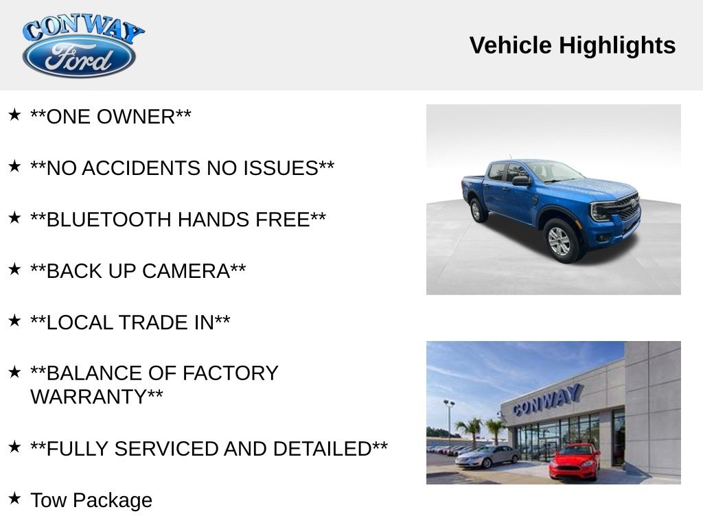 **ONE OWNER**, **NO ACCIDENTS NO ISSUES**, **BLUETOOTH HANDS FREE**, **BACK UP CAMERA**, **LOCAL TRADE IN**, **BALANCE OF FACTORY WARRANTY**, **FULLY SERVICED AND DETAILED**, Tow Package, STX, Cruise Control, Ranger XL, 4D Crew Cab, EcoBoost 2.3L I4 GTDi DOHC Turbocharged VCT, RWD, Velocity Blue Metallic, 4-Wheel Disc Brakes, ABS brakes, Air Conditioning, AM/FM Stereo, Auto High-beam Headlights, Brake assist, Bumpers: body-color, Class IV Trailer Hitch Receiver, Cruise Control, Dampened Tailgate, Delay-off headlights, Driver door bin, Dual front impact airbags, Dual front side impact airbags, Electronic Stability Control, Equipment Group 100A Standard, Front fog lights, Front reading lights, Front wheel independent suspension, Halogen Fog Lamps, LED Reflector Headlamps, Low tire pressure warning, Panic alarm, Power door mirrors, Power windows, Premium Cloth Front Bucket Seats, Remote keyless entry, Steering wheel mounted audio controls, STX Appearance Package, STX Fender Badge, SYNC 4A, Telescoping steering wheel, Trailer Tow, Variably intermittent wipers, Wheels: 17" Silver-Painted Aluminum. Priced below KBB Fair Purchase Price!