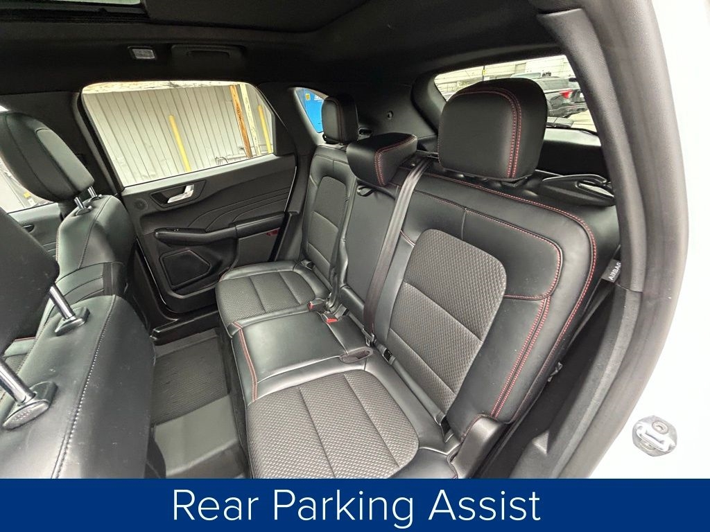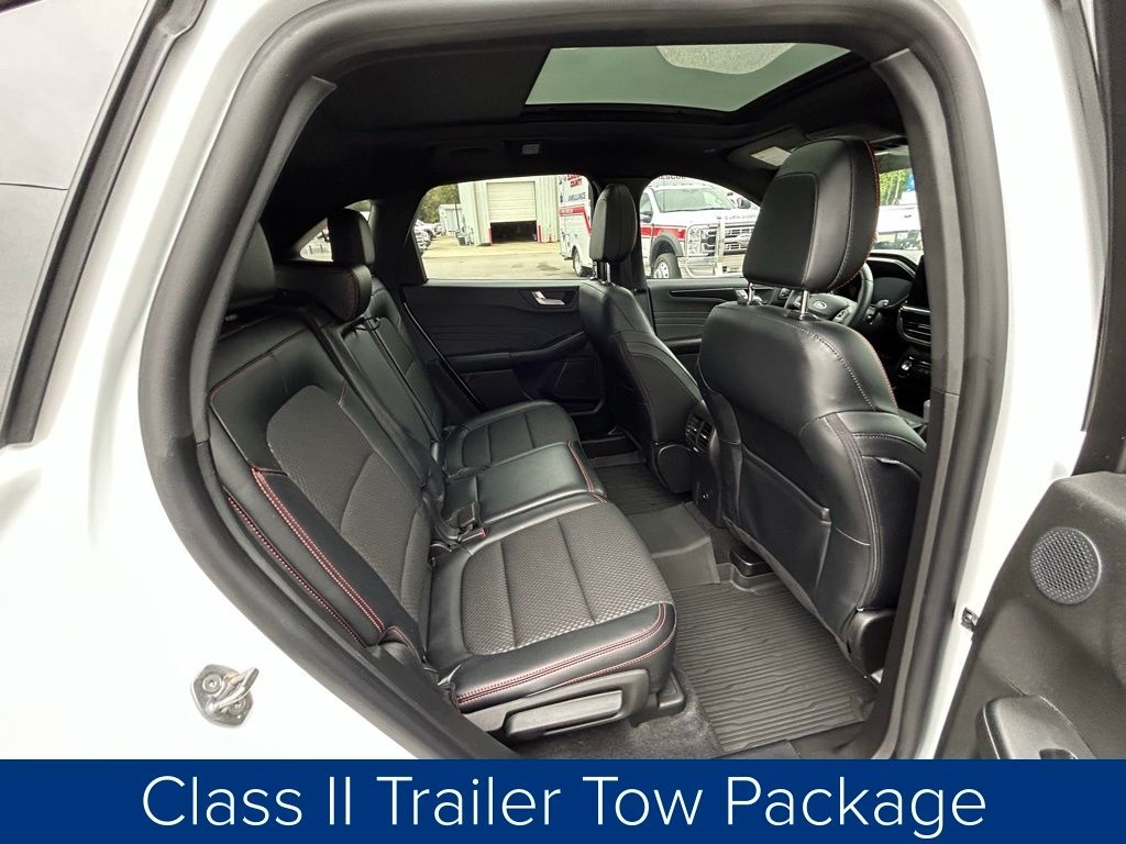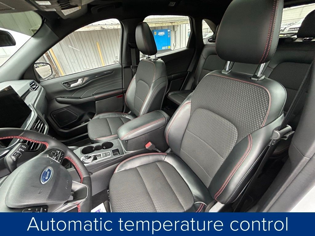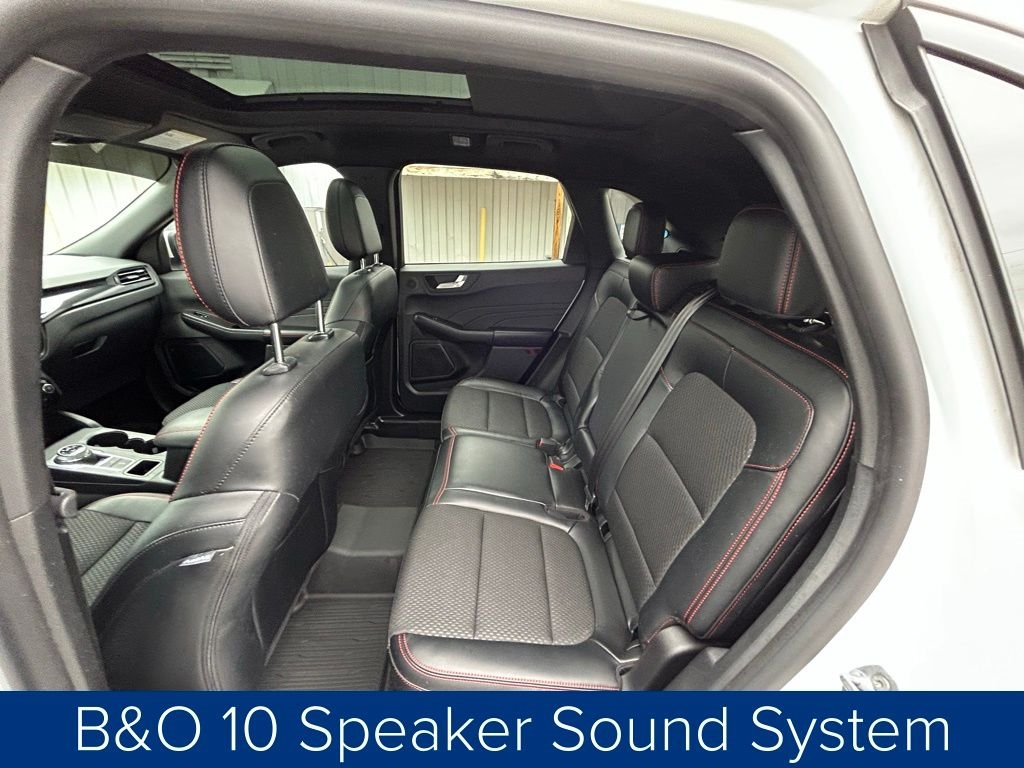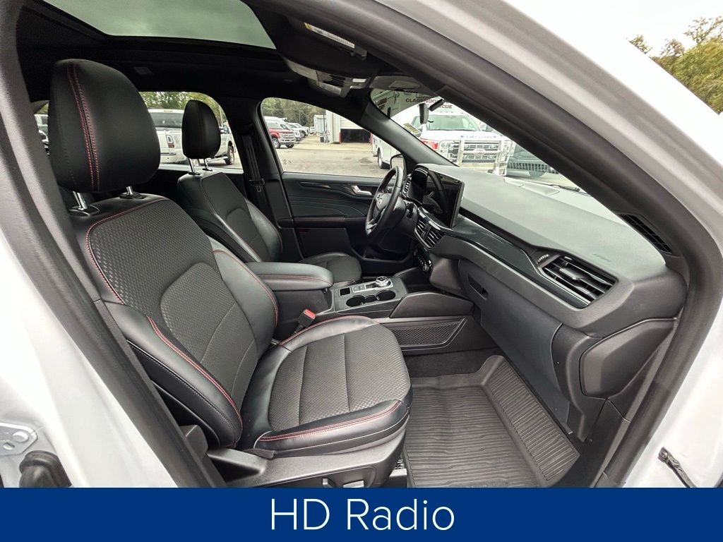 **ONE OWNER**, **NO ACCIDENTS NO ISSUES**, **BLUETOOTH HANDS FREE**, **BACK UP CAMERA**, **POWER DRIVER'S SEAT**, **POWER PASSENGER SEAT**, **BLIND SPOT MONITOR**, **NAVIGATION**, **BALANCE OF FACTORY WARRANTY**, **FULLY SERVICED AND DETAILED**, Apple Carplay-Android Auto, Remote Start, Tech Package, B&O 10 Speaker Sound System, Rear Parking Assist, Trailer Package, Escape ST-Line Select, 4D Sport Utility, EcoBoost 2.0L I4 GTDi DOHC Turbocharged VCT, AWD, Oxford White, Ebony With Red Stitching, 10-Way Power Driver's Seat, 12.3" Productivity Screen in Instrument Cluster, 360-Degree Camera w/Split View, 4-Way Power Passenger Seat, 4-Wheel Disc Brakes, ABS brakes, Air Conditioning, Auto High-beam Headlights, Automatic temperature control, Black Roof-Rack Side Rails, Body Color Mirrors, Brake assist, Bumpers: body-color, Class II Trailer Tow Package, Compass, Connected Built-In Navigation, Delay-off headlights, Driver door bin, Driver vanity mirror, Dual front impact airbags, Dual front side impact airbags, Dual Zone Auto A/C, Equipment Group 401A, Exterior Parking Camera Rear, Ford Co-Pilot360 Assist 2.0, Four wheel independent suspension, Front fog lights, Front reading lights, HD Radio, Heated door mirrors, Heated Seats, Heated steering wheel, Heated Vinyl/Cloth Front Sport Contour Bucket Seats, Intelligent Adaptive Cruise Control w/Stop-and-Go, Intersection Assist, Knee airbag, Memory Package, Navigation System, Outside temperature display, Panic alarm, Panoramic Vista Roof, Passenger door bin, Passenger vanity mirror, Power driver seat, Power Liftgate, Power windows, Radio data system, Radio: B&O Sound System by Bang & Olufsen, Rear Parking Sensor, Rear window defroster, Rear window wiper, Remote keyless entry, Reverse Brake Assist, SecuriCode Keyless Entry Keypad, Speed Sign Recognition, Sport steering wheel, Steering wheel mounted audio controls, SYNC 4 w/Enhanced Voice Recognition, Tachometer, Tech Pack #2, Telescoping steering wheel, Traction control, Trip computer, Variably intermittent wipers, Wheels: 19" Machined-Face Ebony-Painted Aluminum, Wireless Charging Pad.