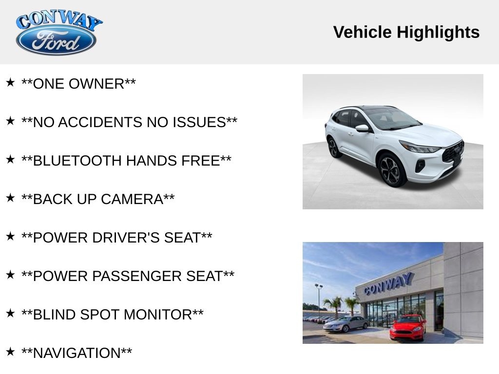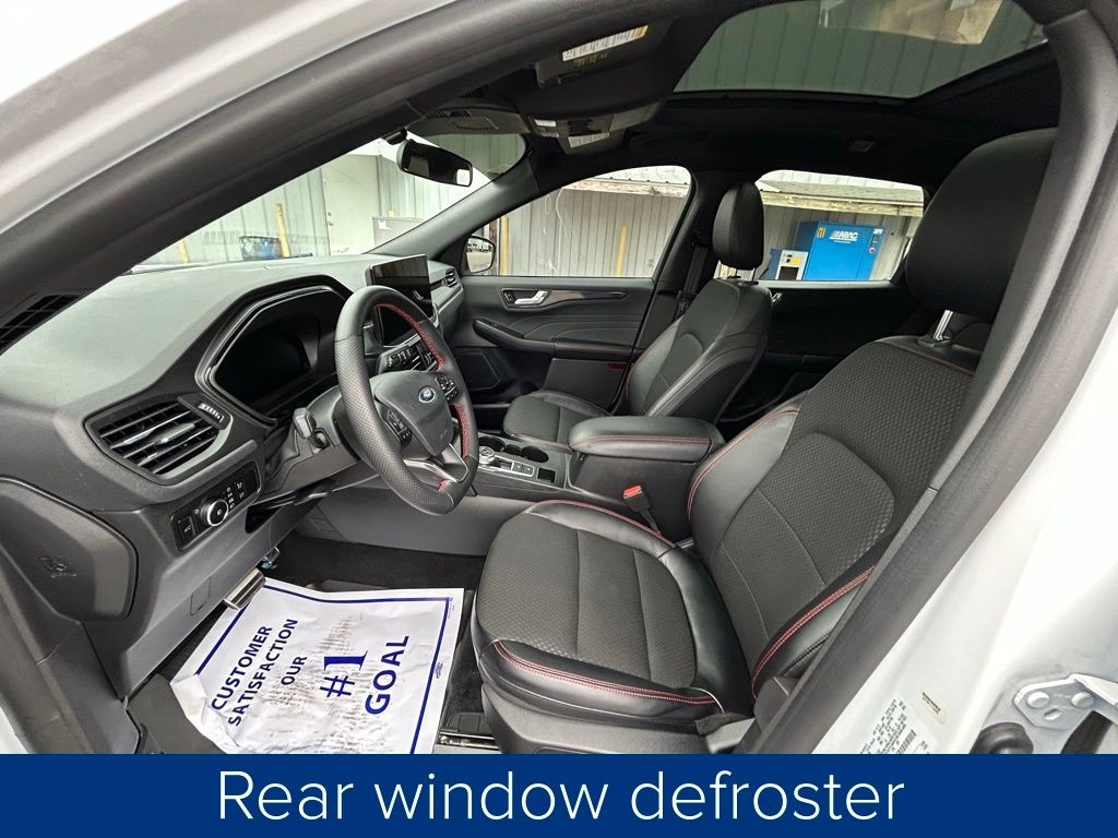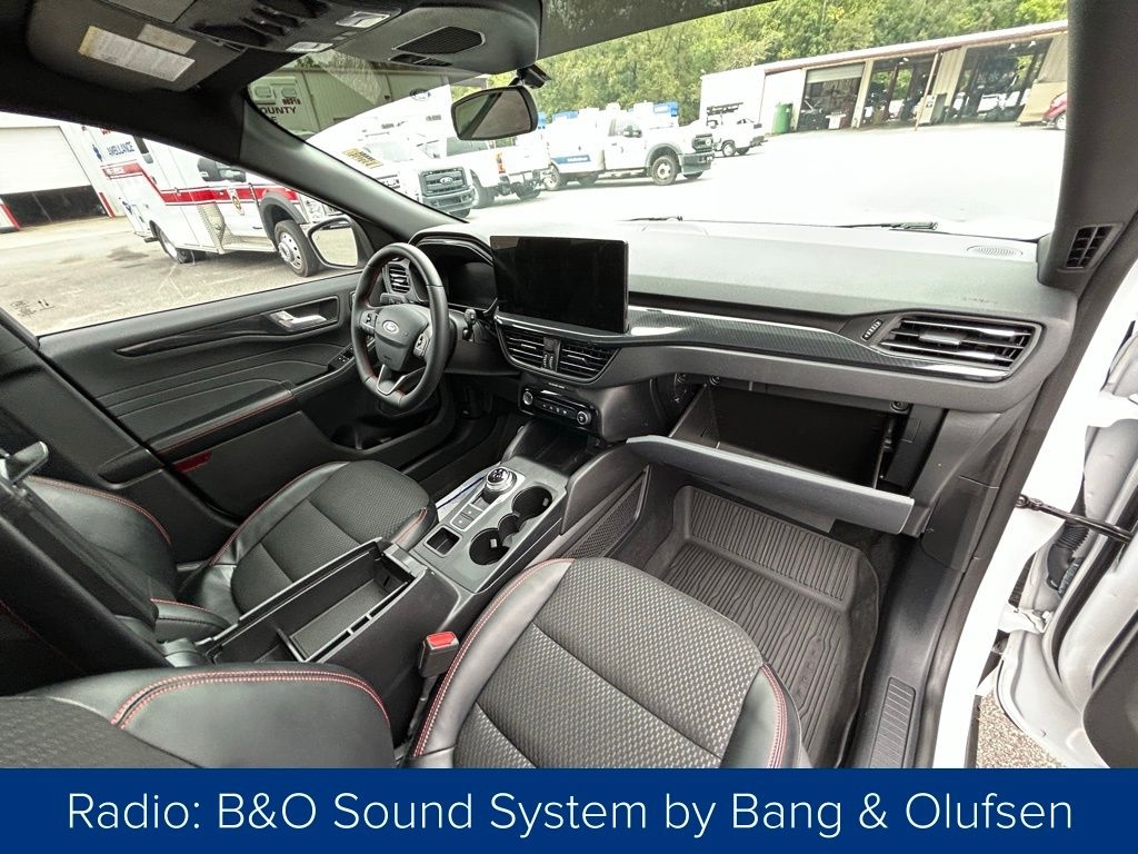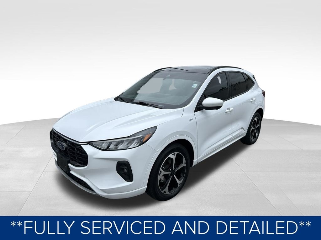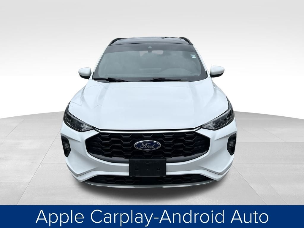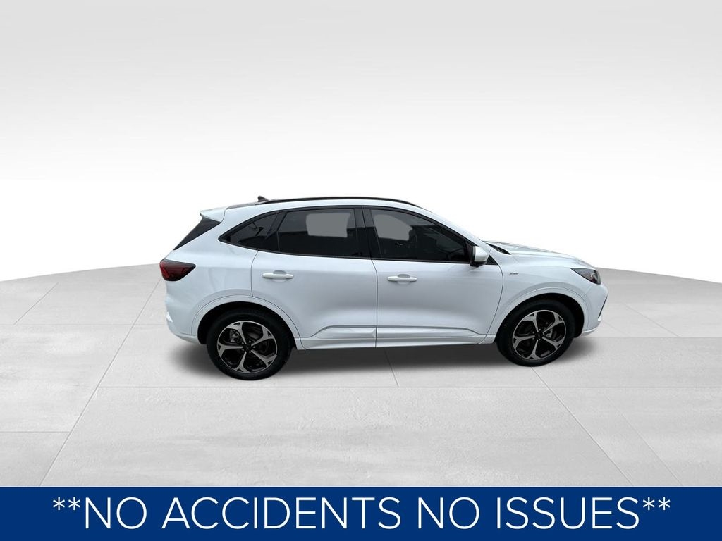 **ONE OWNER**, **NO ACCIDENTS NO ISSUES**, **BLUETOOTH HANDS FREE**, **BACK UP CAMERA**, **POWER DRIVER'S SEAT**, **POWER PASSENGER SEAT**, **BLIND SPOT MONITOR**, **NAVIGATION**, **BALANCE OF FACTORY WARRANTY**, **FULLY SERVICED AND DETAILED**, Apple Carplay-Android Auto, Remote Start, Tech Package, B&O 10 Speaker Sound System, Rear Parking Assist, Trailer Package, Escape ST-Line Select, 4D Sport Utility, EcoBoost 2.0L I4 GTDi DOHC Turbocharged VCT, AWD, Oxford White, Ebony With Red Stitching, 10-Way Power Driver's Seat, 12.3" Productivity Screen in Instrument Cluster, 360-Degree Camera w/Split View, 4-Way Power Passenger Seat, 4-Wheel Disc Brakes, ABS brakes, Air Conditioning, Auto High-beam Headlights, Automatic temperature control, Black Roof-Rack Side Rails, Body Color Mirrors, Brake assist, Bumpers: body-color, Class II Trailer Tow Package, Compass, Connected Built-In Navigation, Delay-off headlights, Driver door bin, Driver vanity mirror, Dual front impact airbags, Dual front side impact airbags, Dual Zone Auto A/C, Equipment Group 401A, Exterior Parking Camera Rear, Ford Co-Pilot360 Assist 2.0, Four wheel independent suspension, Front fog lights, Front reading lights, HD Radio, Heated door mirrors, Heated Seats, Heated steering wheel, Heated Vinyl/Cloth Front Sport Contour Bucket Seats, Intelligent Adaptive Cruise Control w/Stop-and-Go, Intersection Assist, Knee airbag, Memory Package, Navigation System, Outside temperature display, Panic alarm, Panoramic Vista Roof, Passenger door bin, Passenger vanity mirror, Power driver seat, Power Liftgate, Power windows, Radio data system, Radio: B&O Sound System by Bang & Olufsen, Rear Parking Sensor, Rear window defroster, Rear window wiper, Remote keyless entry, Reverse Brake Assist, SecuriCode Keyless Entry Keypad, Speed Sign Recognition, Sport steering wheel, Steering wheel mounted audio controls, SYNC 4 w/Enhanced Voice Recognition, Tachometer, Tech Pack #2, Telescoping steering wheel, Traction control, Trip computer, Variably intermittent wipers, Wheels: 19" Machined-Face Ebony-Painted Aluminum, Wireless Charging Pad.