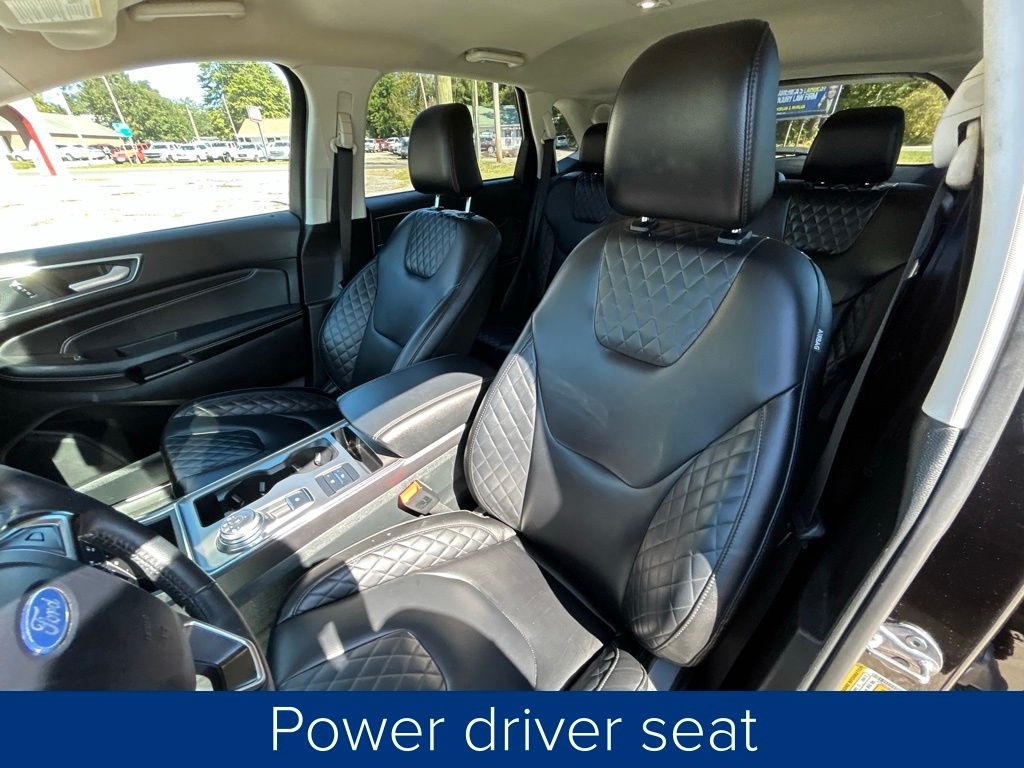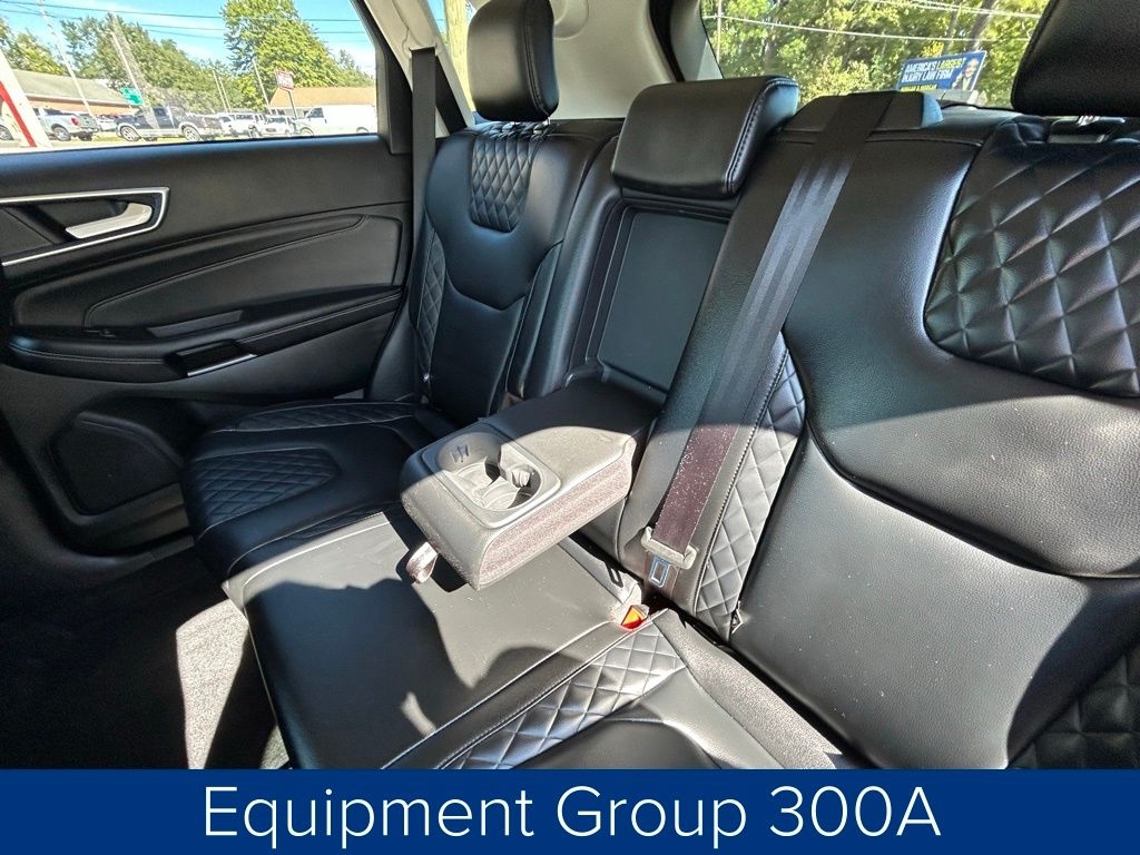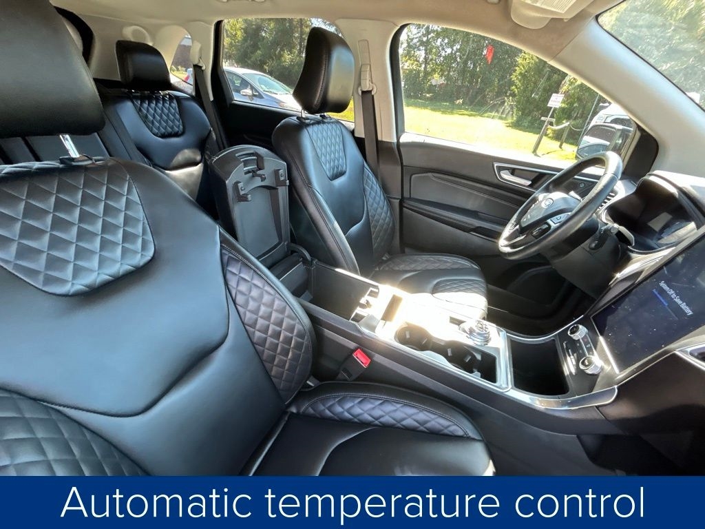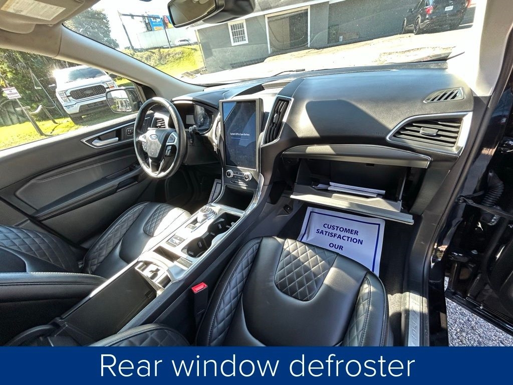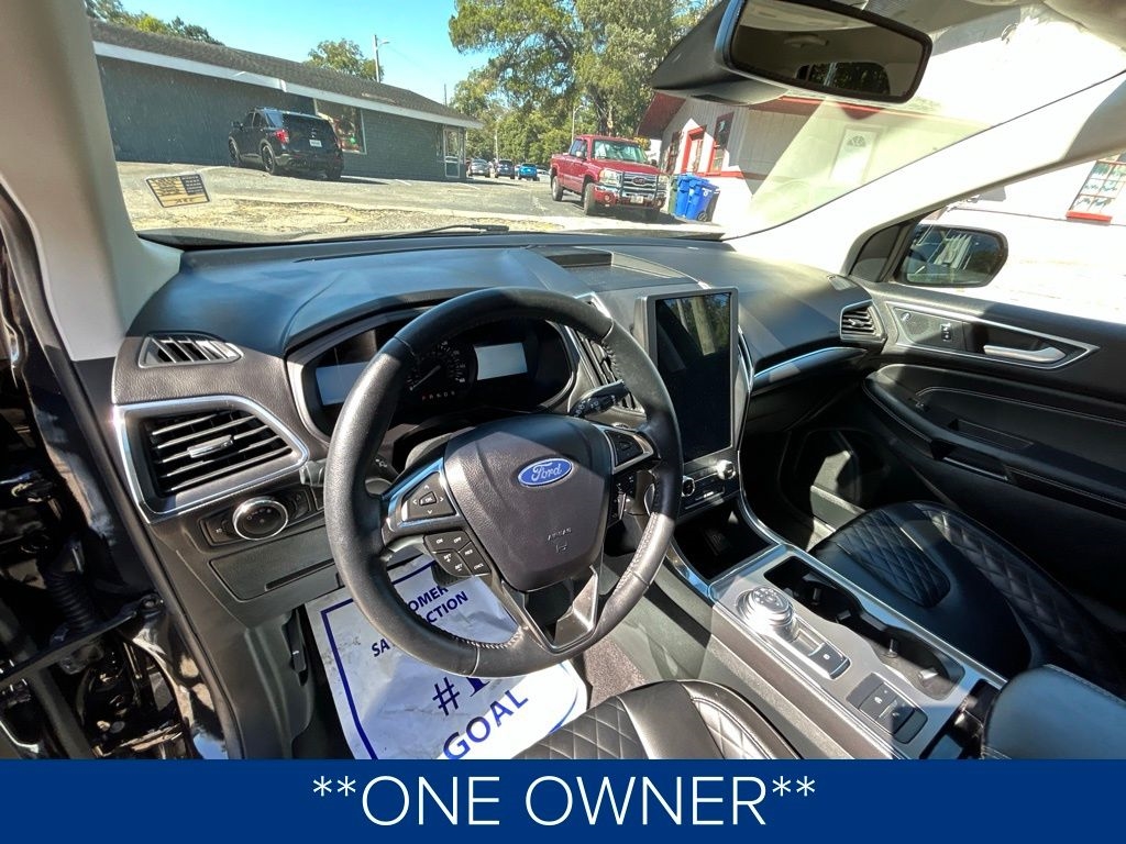 **ONE OWNER**, **BLUETOOTH HANDS FREE**, **BACK UP CAMERA**, **LEATHER INTERIOR**, **POWER DRIVER'S SEAT**, **POWER PASSENGER SEAT**, **BALANCE OF FACTORY WARRANTY**, **FULLY SERVICED AND DETAILED**, Apple Carplay-Android Auto, Remote Start, Ford CoPilot360, FordPass Connect, B&O 12 Speaker System, Rear Park Sensors, Hands Free Liftgate, Rain Sense Wipers, Edge Titanium, 4D Sport Utility, EcoBoost 2.0L I4 GTDi DOHC Turbocharged VCT, AWD, Agate Black Metallic, Ebony w/ActiveX-Trimmed Heated Sport Bucket Seats, 12 Speakers, 4-Wheel Disc Brakes, ABS brakes, ActiveX-Trimmed Heated Sport Bucket Seats, Air Conditioning, Auto High-beam Headlights, Automatic temperature control, Brake assist, Bumpers: body-color, Compass, Cruise Control, Delay-off headlights, Driver door bin, Driver vanity mirror, Dual front impact airbags, Dual front side impact airbags, Dual Zone Auto A/C, Electronic Stability Control, Equipment Group 300A, FordPass Connect, Four wheel independent suspension, Front Bucket Seats, Front fog lights, Front reading lights, Fully automatic headlights, Garage door transmitter, Heated door mirrors, Heated Seats, Heated steering wheel, Knee airbag, Leather steering wheel, Low tire pressure warning, Memory seat, Outside temperature display, Panic alarm, Passenger door bin, Passenger vanity mirror, Power door mirrors, Power driver seat, Power Liftgate, Power passenger seat, Power windows, Radio: B&O Sound System by Bang & Olufsen, Rain sensing wipers, Rear reading lights, Rear window defroster, Rear window wiper, Remote keyless entry, SiriusXM w/360L, Spoiler, Steering wheel mounted audio controls, SYNC 4A w/Enhanced Voice Recognition, Tachometer, Telescoping steering wheel, Traction control, Trip computer, Variably intermittent wipers, Wheels: 19" Luster Nickel-Painted Aluminum.