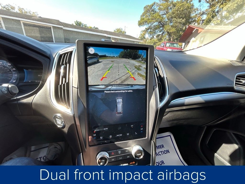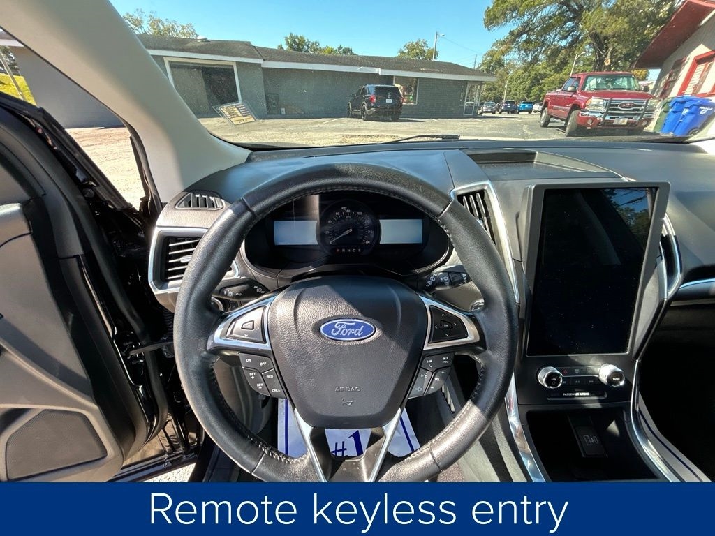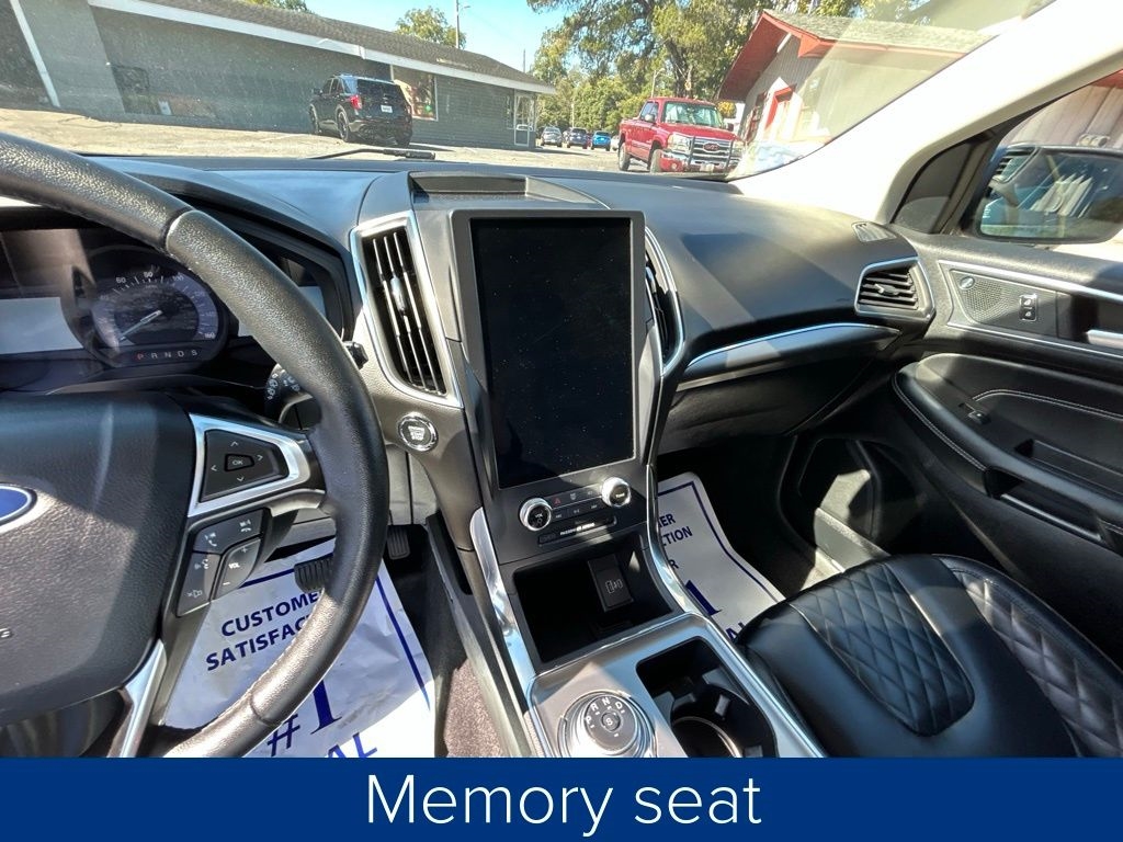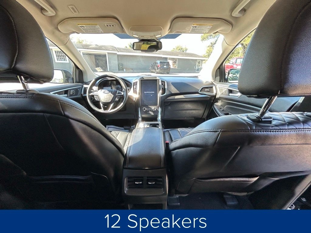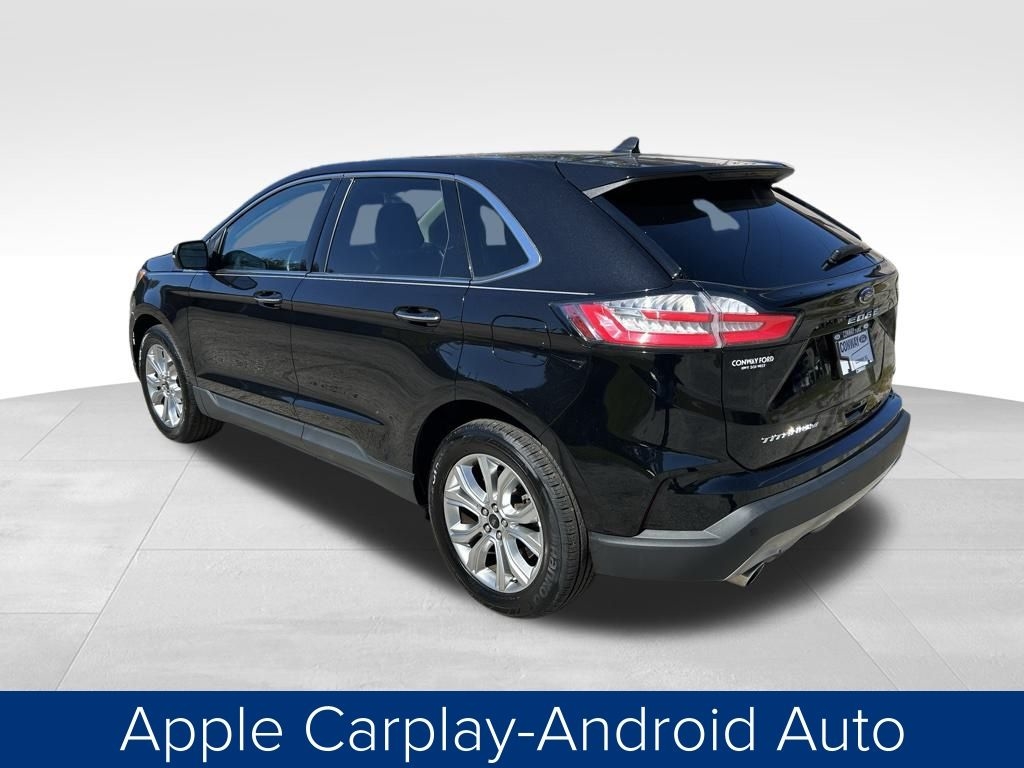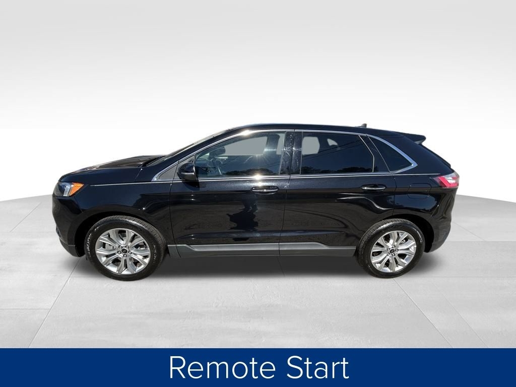 **ONE OWNER**, **BLUETOOTH HANDS FREE**, **BACK UP CAMERA**, **LEATHER INTERIOR**, **POWER DRIVER'S SEAT**, **POWER PASSENGER SEAT**, **BALANCE OF FACTORY WARRANTY**, **FULLY SERVICED AND DETAILED**, Apple Carplay-Android Auto, Remote Start, Ford CoPilot360, FordPass Connect, B&O 12 Speaker System, Rear Park Sensors, Hands Free Liftgate, Rain Sense Wipers, Edge Titanium, 4D Sport Utility, EcoBoost 2.0L I4 GTDi DOHC Turbocharged VCT, AWD, Agate Black Metallic, Ebony w/ActiveX-Trimmed Heated Sport Bucket Seats, 12 Speakers, 4-Wheel Disc Brakes, ABS brakes, ActiveX-Trimmed Heated Sport Bucket Seats, Air Conditioning, Auto High-beam Headlights, Automatic temperature control, Brake assist, Bumpers: body-color, Compass, Cruise Control, Delay-off headlights, Driver door bin, Driver vanity mirror, Dual front impact airbags, Dual front side impact airbags, Dual Zone Auto A/C, Electronic Stability Control, Equipment Group 300A, FordPass Connect, Four wheel independent suspension, Front Bucket Seats, Front fog lights, Front reading lights, Fully automatic headlights, Garage door transmitter, Heated door mirrors, Heated Seats, Heated steering wheel, Knee airbag, Leather steering wheel, Low tire pressure warning, Memory seat, Outside temperature display, Panic alarm, Passenger door bin, Passenger vanity mirror, Power door mirrors, Power driver seat, Power Liftgate, Power passenger seat, Power windows, Radio: B&O Sound System by Bang & Olufsen, Rain sensing wipers, Rear reading lights, Rear window defroster, Rear window wiper, Remote keyless entry, SiriusXM w/360L, Spoiler, Steering wheel mounted audio controls, SYNC 4A w/Enhanced Voice Recognition, Tachometer, Telescoping steering wheel, Traction control, Trip computer, Variably intermittent wipers, Wheels: 19" Luster Nickel-Painted Aluminum.