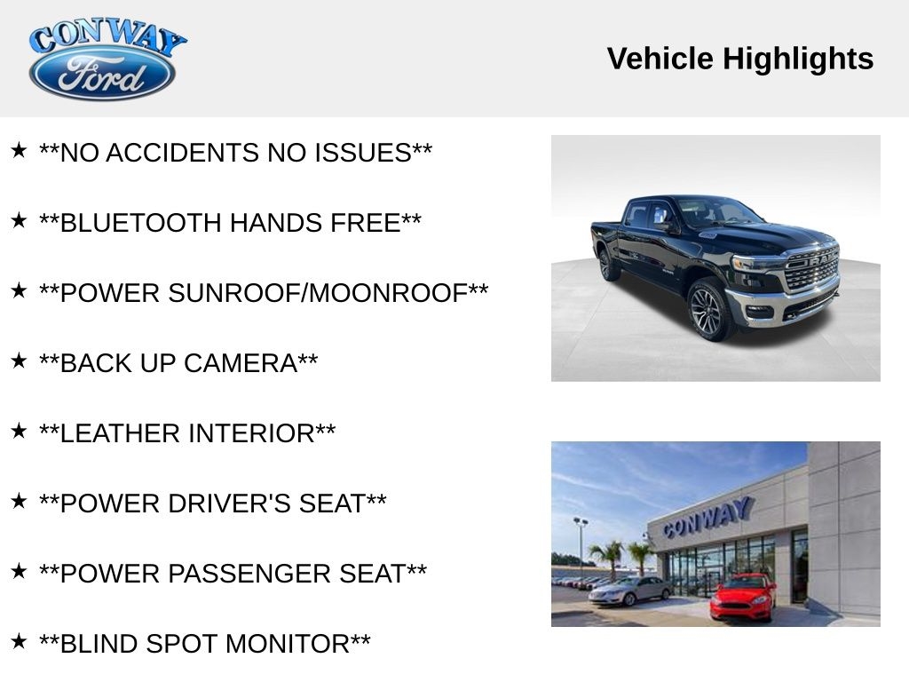 **NO ACCIDENTS NO ISSUES**, **BLUETOOTH HANDS FREE**, **POWER SUNROOF/MOONROOF**, **BACK UP CAMERA**, **LEATHER INTERIOR**, **POWER DRIVER'S SEAT**, **POWER PASSENGER SEAT**, **BLIND SPOT MONITOR**, **NAVIGATION**, **BALANCE OF FACTORY WARRANTY**, **FULLY SERVICED AND DETAILED**, Apple Carplay-Android Auto, Remote Start, Panoramic Sunroof, Massaging Front Seats, Heated and Cooled Front and Rear Seats, Power Running Boards, Adaptive Cruise and Active Driving Assist, Front and Rear Parking Assist, ., 1500 Limited, 4D Crew Cab, 3.0L I6, 4WD, Diamond Black Crystal Pearlcoat, Bison/Mountain Brown Leather, 19 Speakers, 4-Wheel Disc Brakes, 4G LTE Wi-Fi Hot Spot, ABS brakes, Adaptive Cruise Control, Adjustable pedals, Air Conditioning, AM/FM radio: SiriusXM with 360L, Apple CarPlay/Android Auto, Auto High-beam Headlights, Automatic temperature control, Bed Utility Group, Bodyside moldings, Brake assist, Compass, Delay-off headlights, Dome Dual LED Reading Lamp, Driver door bin, Driver vanity mirror, Dual front impact airbags, Dual front side impact airbags, Dual Zone Auto A/C, Dual-Pane Panoramic Sunroof, Electronic Stability Control, Exterior 115V AC Outlet, Forward & Reverse Utility Lights, Front fog lights, Front reading lights, Front wheel independent suspension, Fully automatic headlights, Garage door transmitter, Grille Surround 4 Chrome Texture 5 Chrome, harman/kardon® Speakers, Heated Rear Seats, Heated Seats, Heated steering wheel, Integrated Voice Command w/Bluetooth, LED Dome/Reading Lamp, Longhorn Badge, Longhorn Instrument Cluster Theme 3, Low tire pressure warning, Memory seat, MOPAR 4 Adjustable Cargo Tie-Down Hooks, Navigation System, Outside temperature display, Panic alarm, ParkView Rear Back-Up Camera, Pedal memory, Power door mirrors, Power driver seat, Power passenger seat, Power Telescoping Mirrors, Power windows, Power-Adjustable Convex Aux Mirrors, Premium Door Trim Panel, Premium Filigree Leather Seats, Quick Order Package 22K Longhorn, Radio data system, Radio: Uconnect 5 Nav w/12.0" Display, Rain sensing wipers, Rear step bumper, Rear window defroster, Remote keyless entry, SiriusXM w/360L, Steering wheel mounted audio controls, Tachometer, Telescoping steering wheel, Towing Technology Group, Traction control, Trailer Brake Control, Trailer Hitch Line-Up Assist, Trailer Light Check, Trailer Reverse Steering Control, Trailer Tire Pressure Monitoring System, Trailer Tow Mirrors, Trailer Tow Package, Trip computer, Turn signal indicator mirrors, Variably intermittent wipers, Ventilated front seats, Ventilated rear seats, Warm Chrome Key Fob, Wheels: 20" x 9" Premium Paint/Polished. Priced below KBB Fair Purchase Price!