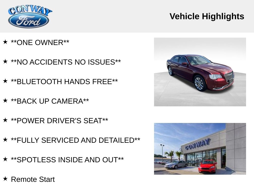 **ONE OWNER**, **NO ACCIDENTS NO ISSUES**, **BLUETOOTH HANDS FREE**, **BACK UP CAMERA**, **POWER DRIVER'S SEAT**, **FULLY SERVICED AND DETAILED**, **SPOTLESS INSIDE AND OUT**, Remote Start, Dual RearExhaust with Bright Tips, Dual Zone Automatic Dual Zone Air Conditioning, 300 Touring, 4D Sedan, 3.6L 6-Cylinder SMPI DOHC, 8-Speed Automatic, AWD, Velvet Red Pearlcoat, 19" x 7.5" Polished Aluminum Wheels, 4-Wheel Disc Brakes, ABS brakes, Air Conditioning, AM/FM radio: SiriusXM, Apple CarPlay/Android Auto, Automatic temperature control, Brake assist, Bumpers: body-color, Cloth High-Back Bucket Seats, Cruise Control, Delay-off headlights, Driver Convenience Group, Driver door bin, Driver vanity mirror, Dual front impact airbags, Dual front side impact airbags, Dual Zone Auto A/C, Electronic Stability Control, Exterior Parking Camera Rear, Four wheel independent suspension, Front LED Fog Lamps, Front reading lights, Heated door mirrors, Knee airbag, Low tire pressure warning, Outside temperature display, Panic alarm, Passenger door bin, Power door mirrors, Power driver seat, Power windows, Quick Order Package 22E Touring, Radio data system, Radio: Uconnect 4C w/8.4" Display, Rear window defroster, Remote keyless entry, Remote Start System, Steering wheel mounted audio controls, Tachometer, Telescoping steering wheel, Universal Garage Door Opener, Variably intermittent wipers.