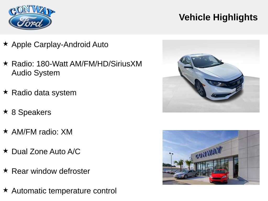 **NO ACCIDENTS NO ISSUES**, **BLUETOOTH HANDS FREE**, **POWER SUNROOF/MOONROOF**, **BACK UP CAMERA**, **POWER DRIVER'S SEAT**, **BLIND SPOT MONITOR**, **LOCAL TRADE IN**, **FULLY SERVICED AND DETAILED**, Apple Carplay-Android Auto, Civic EX, 4D Sedan, 1.5L I-4 DI DOHC Turbocharged, FWD, 17" Alloy Wheels, 4-Wheel Disc Brakes, 8 Speakers, ABS brakes, Air Conditioning, AM/FM radio: XM, Apple CarPlay/Android Auto, Auto High-beam Headlights, Automatic temperature control, Brake assist, Bumpers: body-color, Cloth Seat Trim, Cruise Control, Delay-off headlights, Driver door bin, Driver vanity mirror, Dual front impact airbags, Dual front side impact airbags, Dual Zone Auto A/C, Electronic Stability Control, Exterior Parking Camera Rear, Forward collision: Collision Mitigation Braking System (CMBS) + FCW mitigation, Four wheel independent suspension, Front Bucket Seats, Front fog lights, Front reading lights, Fully automatic headlights, Heated door mirrors, Heated Seats, Lane departure: Lane Keeping Assist System (LKAS) active, Leather Shift Knob, Low tire pressure warning, Outside temperature display, Panic alarm, Passenger door bin, Passenger vanity mirror, Power door mirrors, Power driver seat, Power moonroof, Power windows, Radio data system, Radio: 180-Watt AM/FM/HD/SiriusXM Audio System, Rear window defroster, Speed-Sensitive Wipers, Spoiler, Tachometer, Telescoping steering wheel, Trip computer, Variably intermittent wipers.