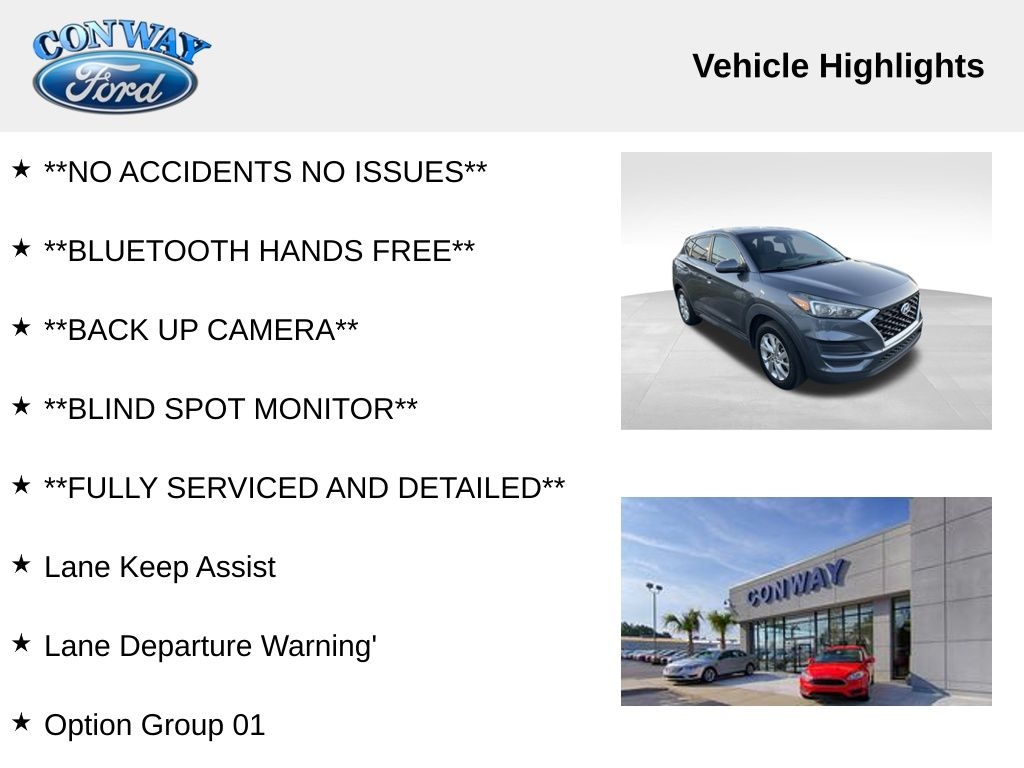 **NO ACCIDENTS NO ISSUES**, **BLUETOOTH HANDS FREE**, **BACK UP CAMERA**, **BLIND SPOT MONITOR**, **FULLY SERVICED AND DETAILED**, Lane Keep Assist, Lane Departure Warning', Tucson SE, 4D Sport Utility, FWD, Coliseum Gray, 17" x 7.0J Alloy Wheels, 4-Wheel Disc Brakes, 6.1" Color Touchscreen, ABS brakes, Air Conditioning, Brake assist, Bumpers: body-color, Cruise Control, Delay-off headlights, Driver door bin, Driver vanity mirror, Dual front side impact airbags, Electronic Stability Control, Exterior Parking Camera Rear, Four wheel independent suspension, Front Bucket Seats, Front reading lights, Fully automatic headlights, Low tire pressure warning, Option Group 01, Outside temperature display, Panic alarm, Passenger door bin, Power door mirrors, Power windows, Radio: AM/FM Audio System, Rear window defroster, Rear window wiper, Remote keyless entry, Spoiler, Steering wheel mounted audio controls, Tachometer, Telescoping steering wheel, Trip computer, Variably intermittent wipers, YES Essentials Cloth Seat Trim.