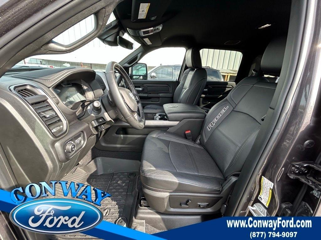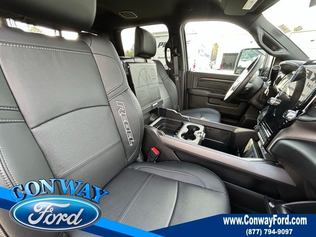 **ONE OWNER**, **NO ACCIDENTS NO ISSUES**, **BLUETOOTH HANDS FREE**, **BACK UP CAMERA**, **LEATHER INTERIOR**, **POWER DRIVER'S SEAT**, **POWER PASSENGER SEAT**, **BLIND SPOT MONITOR**, **NAVIGATION**, **LOCAL TRADE IN**, **BALANCE OF FACTORY WARRANTY**, **FULLY SERVICED AND DETAILED**, Apple Carplay-Android Auto, Remote Start, High Output Cummins Diesel, Heated and Cooled Front Seats- Heated Rear, 2500 Rebel 6.7 Liter HO Cummins Diesel, 4D Crew Cab, 6.7L I6, 4WD, Granite Crystal Metallic Clearcoat, Black Leather, 115V Auxiliary Rear Power Outlet, 2 Way Rear Headrest Seat, 3.42 Axle Ratio, 4 Way Front Headrests, 4-Wheel Disc Brakes, 4G LTE Wi-Fi Hot Spot, 9 Alpine Speakers w/Subwoofer, ABS brakes, Adaptive Cruise Control, Adjustable pedals, Air Conditioning, AM/FM radio: SiriusXM with 360L, Apple CarPlay/Android Auto, Auto Adjust In Reverse Exterior Mirrors, Auto Dim Exterior Mirror, Auto High Beam Headlamp Control, Auto Power-Folding Mirrors, Auto-Dimming Exterior Passenger Mirror, Automatic temperature control, Black Exterior Mirrors, Body Color Door Handles, Brake assist, Bucket Seats, Compass, Dash Pass Thru Wire Circuits, Delay-off headlights, Driver door bin, Dual front impact airbags, Dual front side impact airbags, Dual Wireless Charging Pad, Dual-Zone Auto A/C, Electronic Stability Control, Exterior Mirrors Courtesy Lamps, Exterior Mirrors w/Heating Element, Exterior Mirrors w/Memory, Exterior Mirrors w/Supplemental Signals, Folding Flat Load Floor Storage, Forward & Reverse Utility Lights, Front Door Locks 2-Door Passive Entry, Front fog lights, Front reading lights, Front Seat Back Map Pockets, Full Length Upgraded Floor Console, Fully automatic headlights, Heated door mirrors, Heated Front Seats, Heated Second Row Seats, Heated Steering Wheel, High Back Seats, I/P Mounted Auxiliary Switches, Integrated Voice Command w/Bluetooth, Leather steering wheel, Leather Trimmed Bucket Seats (PL), LED Dome Lamp w/On/Off Switch, LED Interior Lighting, Low tire pressure warning, Media Hub w/2 Charge Only USBs, Mirror Running Lights, MOPAR Front & Rear Rubber Floor Mats, Navigation System, Outside temperature display, Overhead LED Lamps, Panic alarm, ParkView Rear Back-Up Camera, Passenger vanity mirror, Power 2-Way Driver Lumbar Adjust, Power 2-Way Passenger Lumbar Adjust, Power Adjust 8-Way Driver Seat, Power Adjust 8-Way Front Passenger Seat, Power Adjust Mirrors, Power Adjustable Convex Aux Mirrors, Power Adjustable Pedals w/Memory, Power driver seat, Power Heated Fold Telescopic Mirrors w/Memory, Power Telescoping Mirrors, Power windows, Premium Overhead Console, Quick Order Package 24R Rebel, Radio data system, Radio: Uconnect 5 Nav w/12.0" Display, Radio/Driver Seat/Mirrors/Pedals Memory, Rain Sensitive Windshield Wipers, Rear 60/40 Folding Seat, Rear step bumper, Rear window defroster, Rebel Level 1 Equipment Group, Remote keyless entry, Selectable Tire Fill Alert, SiriusXM Radio Service, Sport Performance Hood, Steering wheel mounted audio controls, Sun Visors w/Illuminated Vanity Mirrors, Tachometer, Tilt steering wheel, Traction control, Trip computer, Universal Garage Door Opener, Variably intermittent wipers, Ventilated Front Seats, Wheels: 20" x 8.0" Black Diamond Cut Aluminum. Priced below KBB Fair Purchase Price!