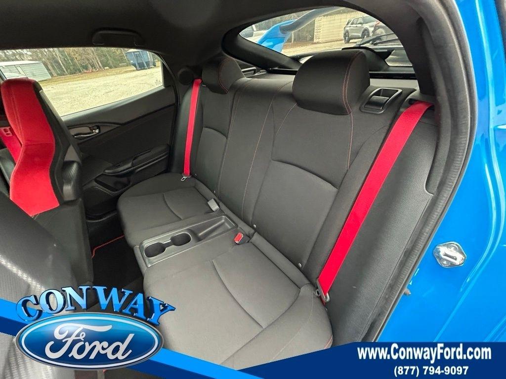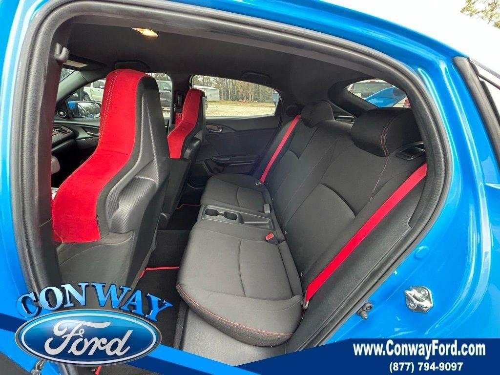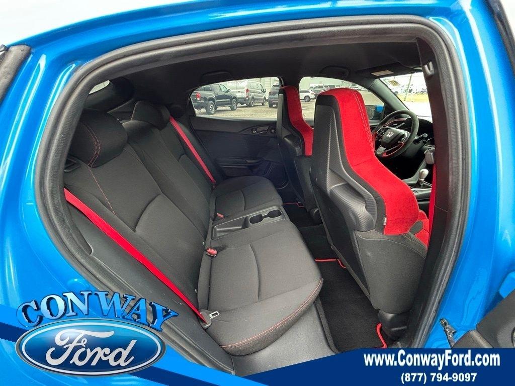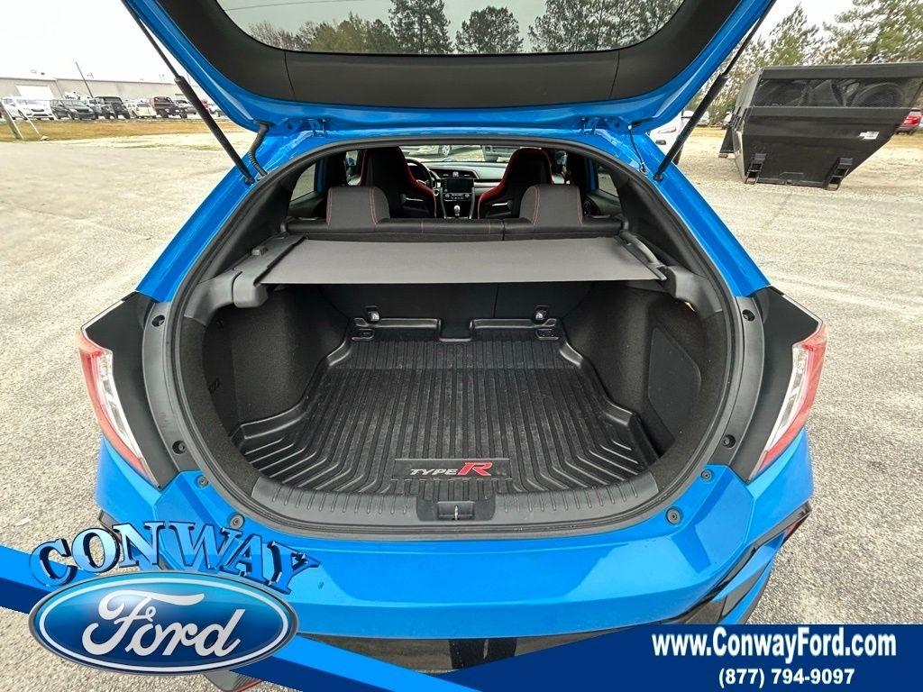 The interior of the Civic Type R is just as impressive, with supportive and stylish Suede-Effect Fabric Seating Surfaces, dual-zone automatic climate control, and a sleek, driver-focused layout. The spacious cabin and versatile cargo area make this high-performance hatchback a practical choice for your daily commute or weekend adventures.