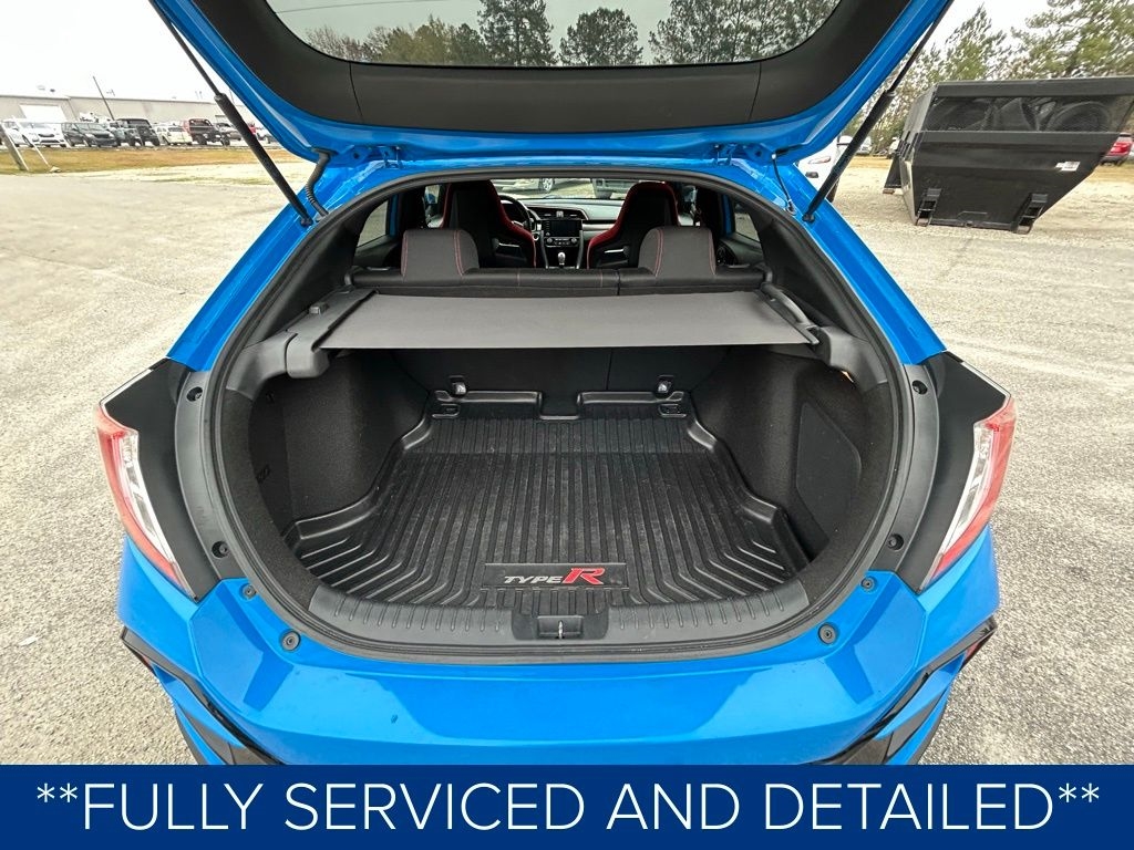 The interior of the Civic Type R is just as impressive, with supportive and stylish Suede-Effect Fabric Seating Surfaces, dual-zone automatic climate control, and a sleek, driver-focused layout. The spacious cabin and versatile cargo area make this high-performance hatchback a practical choice for your daily commute or weekend adventures.