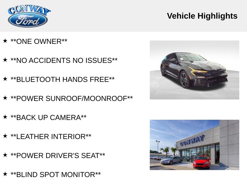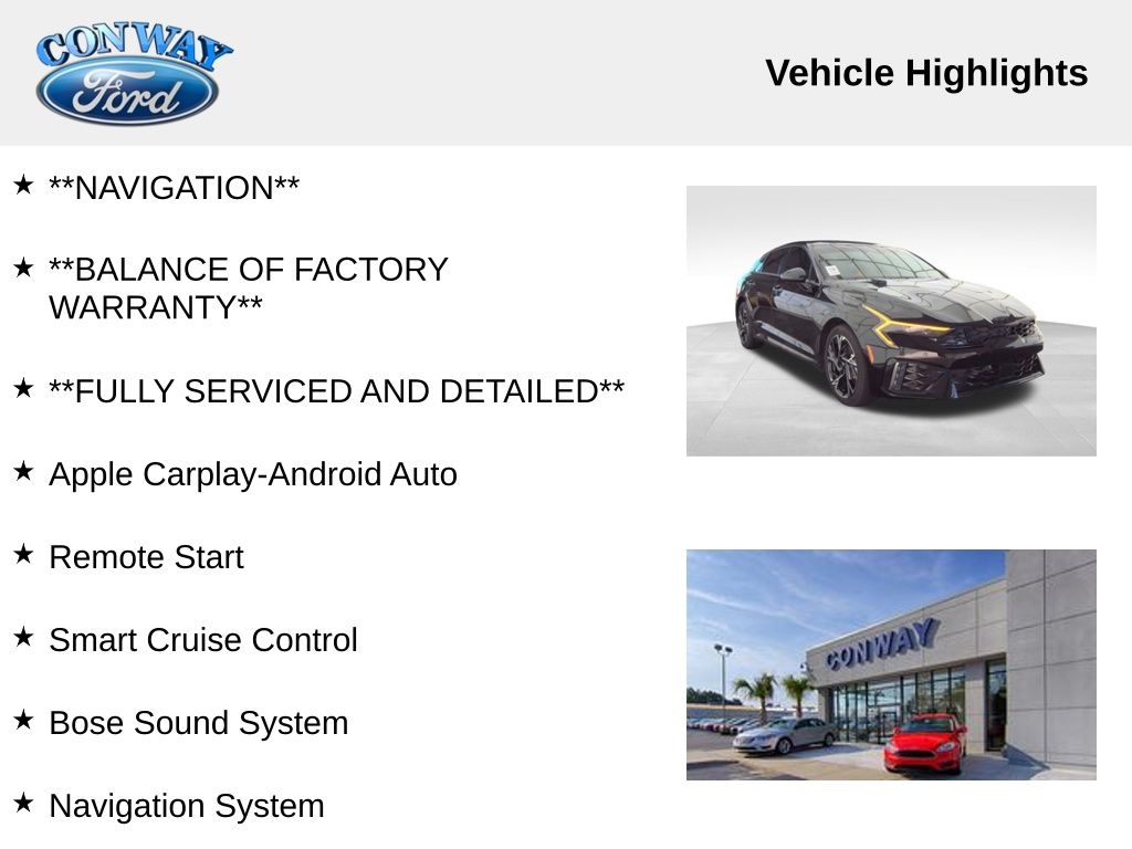 **ONE OWNER**, **NO ACCIDENTS NO ISSUES**, **BLUETOOTH HANDS FREE**, **POWER SUNROOF/MOONROOF**, **BACK UP CAMERA**, **LEATHER INTERIOR**, **POWER DRIVER'S SEAT**, **BLIND SPOT MONITOR**, **NAVIGATION**, **BALANCE OF FACTORY WARRANTY**, **FULLY SERVICED AND DETAILED**, Apple Carplay-Android Auto, Remote Start, Smart Cruise Control, Bose Sound System, K5 GT-Line, 4D Sedan, I4, FWD, Aurora Black Pearl, Black w/SynTex Seat Trim, 4-Wheel Disc Brakes, ABS brakes, Active Sound Design, Adaptive Cruise Control, Air Conditioning, Auto High-beam Headlights, Automatic temperature control, Bose Premium Audio, Brake assist, Bumpers: body-color, Delay-off headlights, Driver door bin, Driver vanity mirror, Dual front impact airbags, Dual front side impact airbags, Dual Zone Auto A/C, Electronic Stability Control, Four wheel independent suspension, Front Bucket Seats, Front fog lights, Front reading lights, Fully automatic headlights, GT-Line Premium Package, GT-Line Red Interior Package, Heated door mirrors, Heated Front and Rear Seats Bucket Seats, Heated steering wheel, Knee airbag, Leather Shift Knob, Leather steering wheel, LED Interior Lighting, Low tire pressure warning, Navigation System, Outside temperature display, Panic alarm, Panoramic Sunroof, Passenger vanity mirror, Power door mirrors, Power driver seat, Power windows, Radio data system, Radio: AM/FM Audio System, Rear window defroster, Remote keyless entry, Steering wheel mounted audio controls, SynTex Seat Trim, Tachometer, Telescoping steering wheel, Trip computer, Turn signal indicator mirrors, Variably intermittent wipers, Wheels: 18" x 7.5J Gloss Black Machined Finish Alloy.