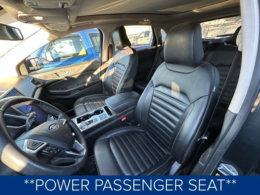 **ONE OWNER**, **NO ACCIDENTS NO ISSUES**, **BLUETOOTH HANDS FREE**, **POWER SUNROOF/MOONROOF**, **BACK UP CAMERA**, **LEATHER INTERIOR**, **POWER DRIVER'S SEAT**, **POWER PASSENGER SEAT**, **LOCAL TRADE IN**, **FULLY SERVICED AND DETAILED**, Apple Carplay-Android Auto, Remote Start, Power Liftgate, Ford CoPilot 360, FordPass Connect, Heated Seats and Steering Wheel, Edge SEL, 4D Sport Utility, EcoBoost 2.0L I4 GTDi DOHC Turbocharged VCT, AWD, Stone Blue Metallic, 110V/150W AC Power Outlet, 4-Wheel Disc Brakes, ABS brakes, ActiveX Seating Material Heated Bucket Seats, Air Conditioning, AM/FM radio: SiriusXM with 360L, Auto High-beam Headlights, Automatic temperature control, Brake assist, Bumpers: body-color, Class II Trailer Tow Package, Compass, Convenience Package, Cruise Control, Delay-off headlights, Driver door bin, Driver vanity mirror, Dual front impact airbags, Dual front side impact airbags, Dual Zone Auto A/C, Electronic Stability Control, Equipment Group 201A, Fog Lamps w/Chrome Bezel, Four wheel independent suspension, Front Bucket Seats, Front reading lights, Fully automatic headlights, Heated door mirrors, Heated Seats, Heated Steering Wheel, Knee airbag, Low tire pressure warning, Outside temperature display, Panic alarm, Panoramic Vista Roof, Passenger door bin, Passenger vanity mirror, Perimeter Alarm, Power door mirrors, Power driver seat, Power Liftgate, Power passenger seat, Power windows, Rear Parking Sensors, Rear reading lights, Rear window defroster, Rear window wiper, Remote Start System, SecuriCode Keyless Entry Keypad, SiriusXM w/360L, Spoiler, SYNC 4A w/Enhanced Voice Recognition, Tachometer, Telescoping steering wheel, Traction control, Trip computer, Universal Garage Door Opener (UGDO), Variably intermittent wipers, Wheels: 18" Sparkle Silver-Painted Aluminum, Wireless Charging Pad.