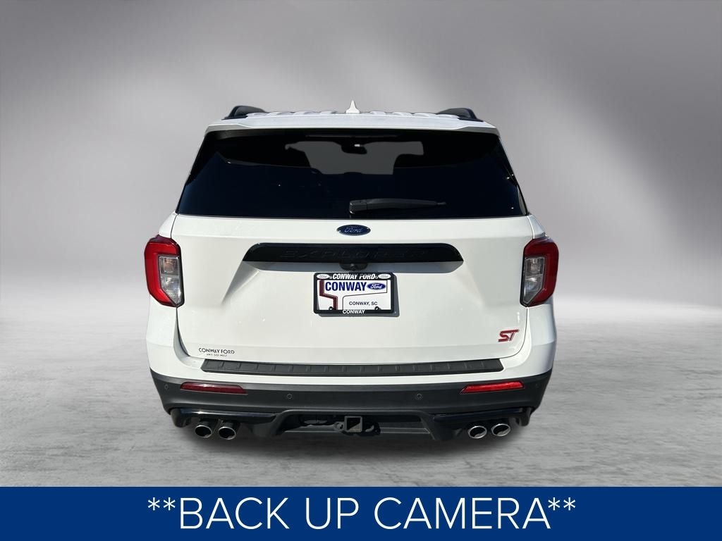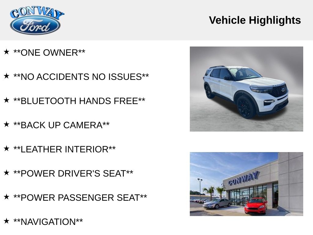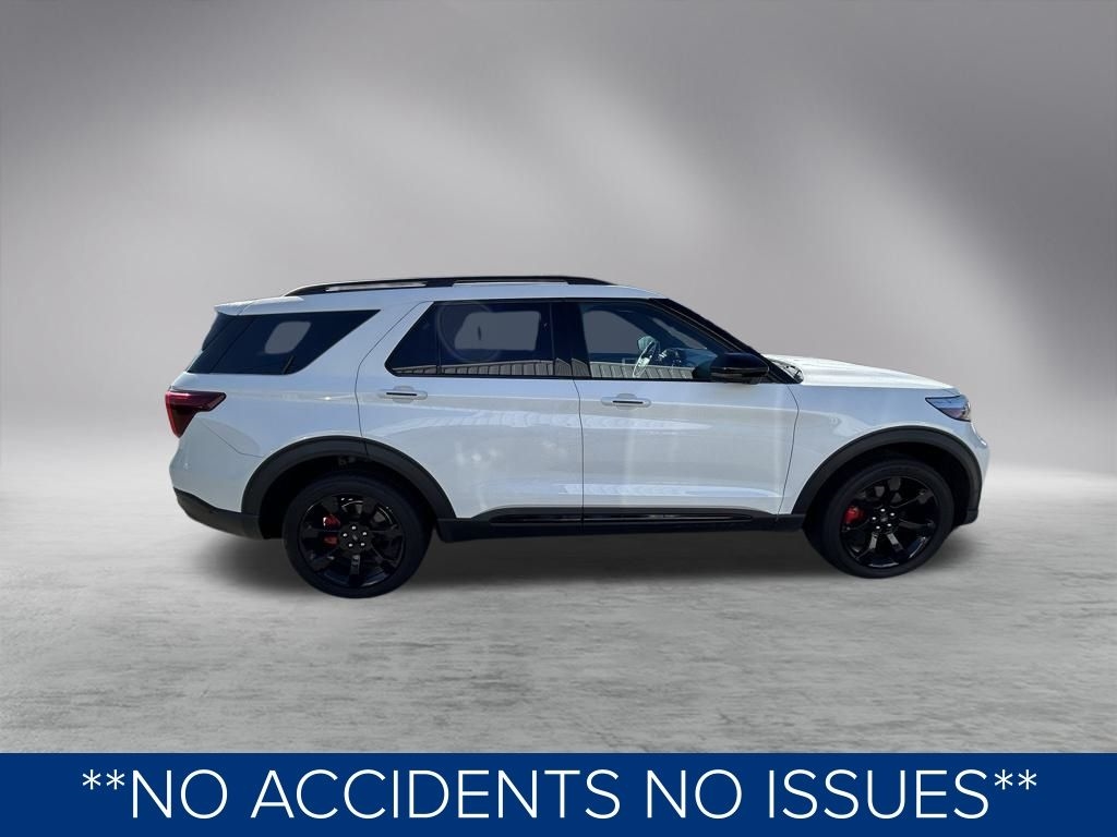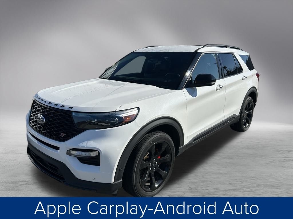 The vehicle has been thoroughly inspected and detailed, ensuring it is in pristine condition and ready for its next owner. This Explorer ST is a true standout, with a sleek white exterior and a host of premium features that elevate the driving experience.