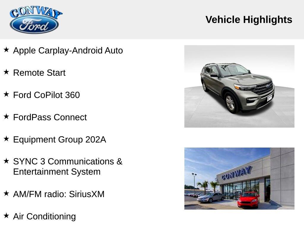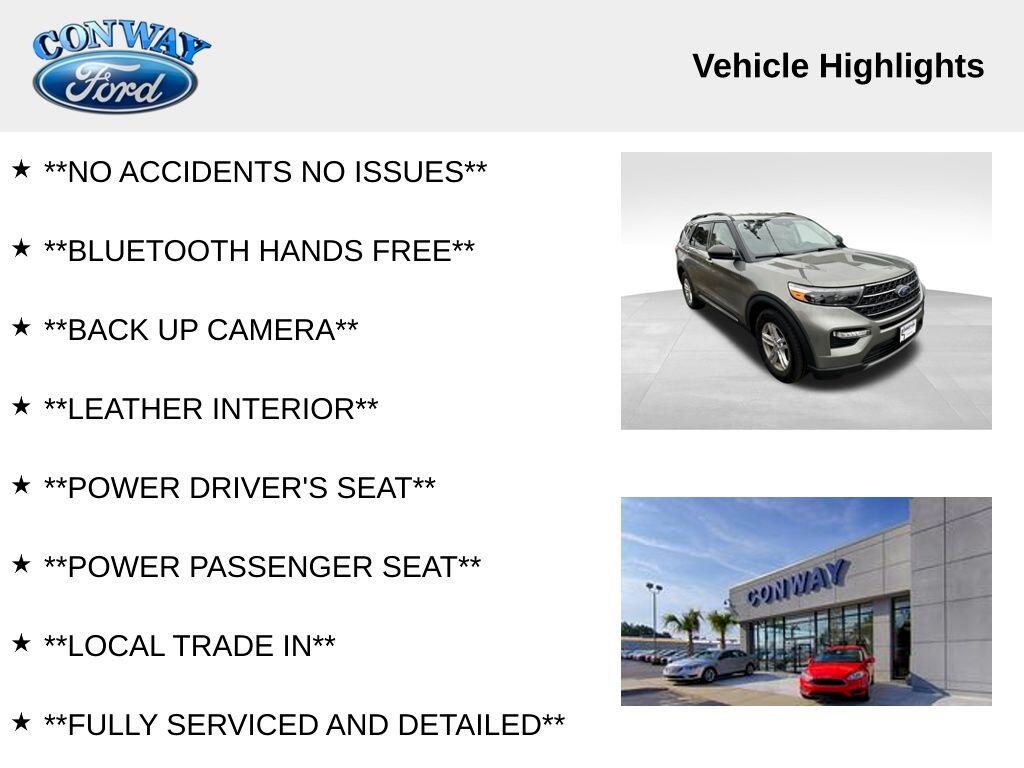 **NO ACCIDENTS NO ISSUES**, **BLUETOOTH HANDS FREE**, **BACK UP CAMERA**, **LEATHER INTERIOR**, **POWER DRIVER'S SEAT**, **POWER PASSENGER SEAT**, **LOCAL TRADE IN**, **FULLY SERVICED AND DETAILED**, Apple Carplay-Android Auto, Remote Start, Ford CoPilot 360, FordPass Connect, Explorer XLT, 4D Sport Utility, 2.3L EcoBoost I-4, 10-Speed Automatic, Silver Spruce, 3rd row seats: bench, 4-Wheel Disc Brakes, ABS brakes, ActiveX Captain's Chairs, Air Conditioning, AM/FM radio: SiriusXM, Auto High-beam Headlights, Automatic temperature control, Brake assist, Bumpers: body-color, Compass, Cruise Control, Delay-off headlights, Driver door bin, Driver vanity mirror, Dual front impact airbags, Dual front side impact airbags, Dual Zone Auto A/C, Electronic Stability Control, Equipment Group 202A, Exterior Parking Camera Rear, FordPass Connect, Four wheel independent suspension, Front Bucket Seats, Front reading lights, Heated door mirrors, Knee airbag, Leather steering wheel, LED Fog Lamps, Outside temperature display, Panic alarm, Passenger door bin, Passenger vanity mirror, Power door mirrors, Power driver seat, Power passenger seat, Power windows, Rear air conditioning, Rear window defroster, Rear window wiper, Remote keyless entry, Remote Start System, Spoiler, Steering wheel mounted audio controls, SYNC 3 Communications & Entertainment System, SYNC 3/Apple CarPlay/Android Auto, Tachometer, Telescoping steering wheel, Trip computer, Variably intermittent wipers, Wheels: 18" 5-Spoke Sparkle Silver-Painted Alum.