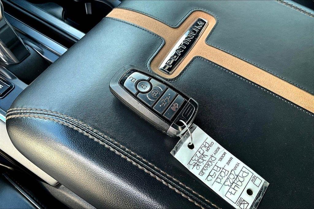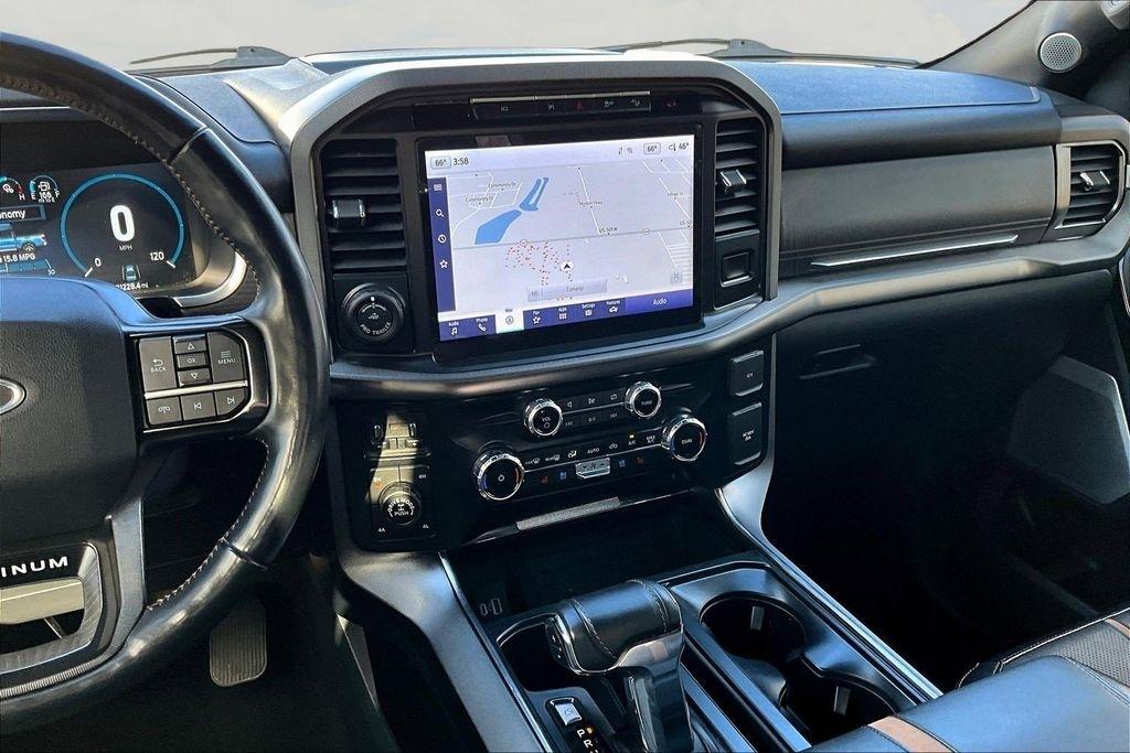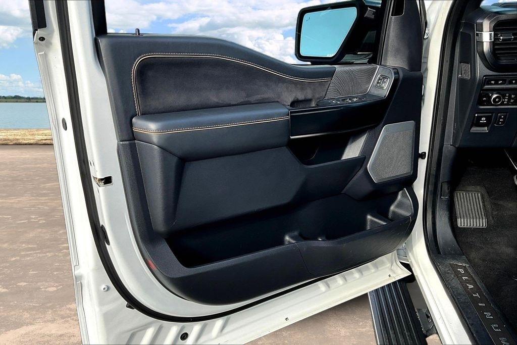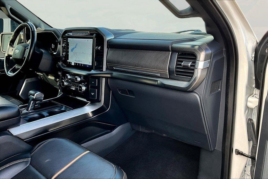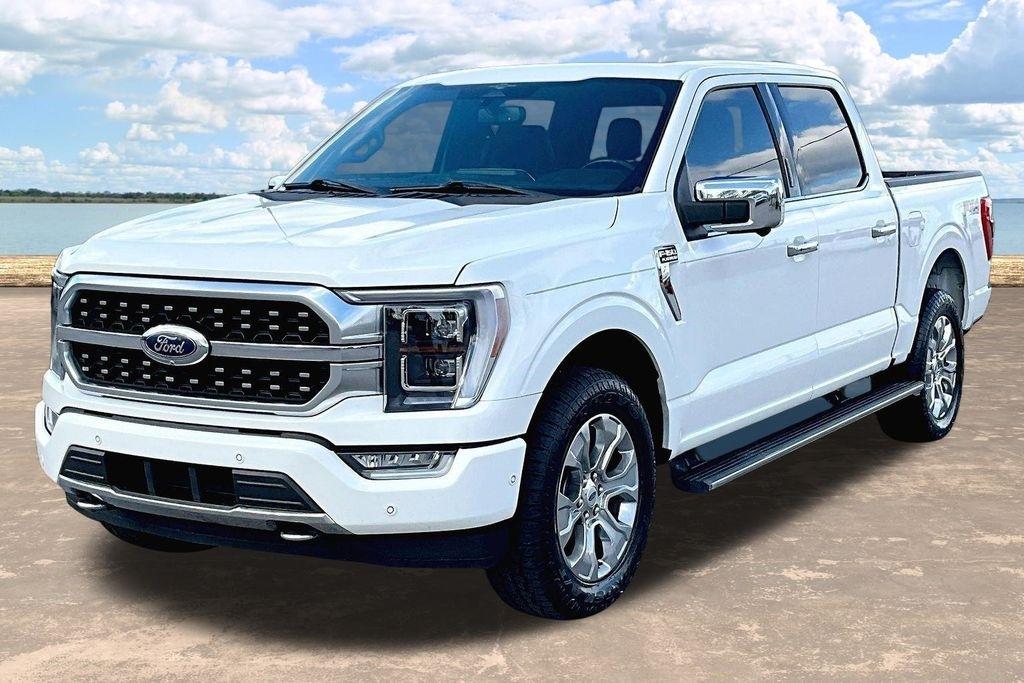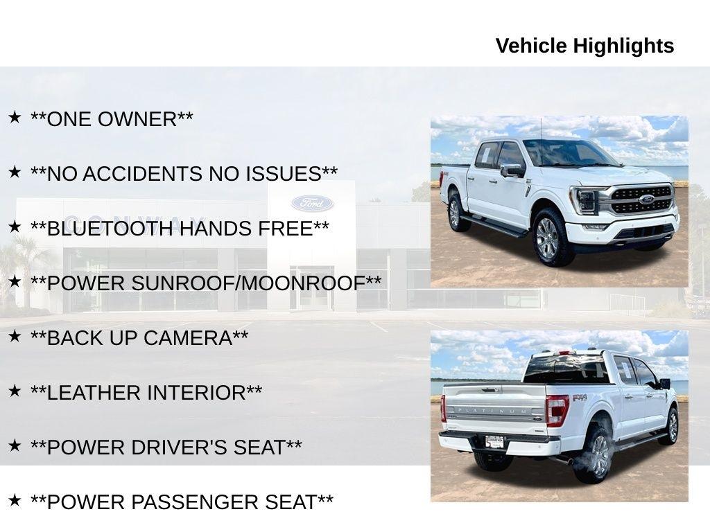 **ONE OWNER**, **NO ACCIDENTS NO ISSUES**, **BLUETOOTH HANDS FREE**, **POWER SUNROOF/MOONROOF**, **BACK UP CAMERA**, **LEATHER INTERIOR**, **POWER DRIVER'S SEAT**, **POWER PASSENGER SEAT**, **BLIND SPOT MONITOR**, **NAVIGATION**, **BALANCE OF FACTORY WARRANTY**, **FULLY SERVICED AND DETAILED**, Apple Carplay-Android Auto, Remote Start, FordPass Connect, FX4 Panoramic Sunroof, Pro Power Onboard-2kw, Max Trailer Pcakge, Ford CoPilot360 Active 2.0, Power Tailgate, 360 Degree Camera Package, 18 Speaker B&O Sound System Unleashed, F-150 Platinum, 4D SuperCrew, 3.5L V6 EcoBoost, 4WD, Star White Metallic Tri-Coat, Black Leather, 20" Polished Aluminum Wheels, 360 Degree Camera, 4-Wheel Disc Brakes, 4x4 FX4 Off-Road Bodyside Decal, ABS brakes, Active Park Assist 2.0 Removal, Adaptive Cruise Control, Adjustable pedals, Air Conditioning, AM/FM radio: SiriusXM with 360L, Auto High-beam Headlights, Automatic temperature control, Bed Utility Package, BoxLink, Brake assist, Bumpers: body-color, Class IV Trailer Hitch Receiver, Compass, Delay-off headlights, Driver door bin, Driver vanity mirror, Dual front impact airbags, Dual front side impact airbags, Dual-Zone Climate, Electronic Locking w/3.31 Axle Ratio, Electronic Stability Control, Equipment Group 701A High, Extended Range 36 Gallon Fuel Tank, Exterior Parking Camera Rear, Ford BlueCruise 1.0, Front fog lights, Front reading lights, Front wheel independent suspension, Fully automatic headlights, FX4 Off-Road Package, Garage door transmitter, GVWR: 7,050 lbs Payload Package, Heated door mirrors, Heated Seats, Heated steering wheel, Hill Descent Control, Integrated Trailer Brake Controller, LED Box Lighting, Low tire pressure warning, Max Trailer Tow Package, Memory seat, Monotube Rear Shocks, Navigation System, Off-Road Tuned Front Shock Absorbers, Outside temperature display, Panic alarm, Passenger door bin, Passenger vanity mirror, Pedal memory, Power door mirrors, Power driver seat, Power passenger seat, Power Tailgate, Power windows, Pro Power Onboard - 2KW, Pro Trailer Backup Assist & Pro Trailer Hitch Assist, Radio data system, Radio: B&O Unleashed Sound System by Bang & Olufsen, Rain sensing wipers, Rear step bumper, Rear window defroster, Remote keyless entry, Rock Crawl Mode, Steering wheel memory, Steering wheel mounted audio controls, SYNC 4 w/Enhanced Voice Recognition, Tachometer, Tailgate Step w/Tailgate Work Surface, Telescoping steering wheel, Traction control, Tray Style Floor Liner, Trip computer, Turn signal indicator mirrors, Twin Panel Moonroof, Variably intermittent wipers, Ventilated front seats.