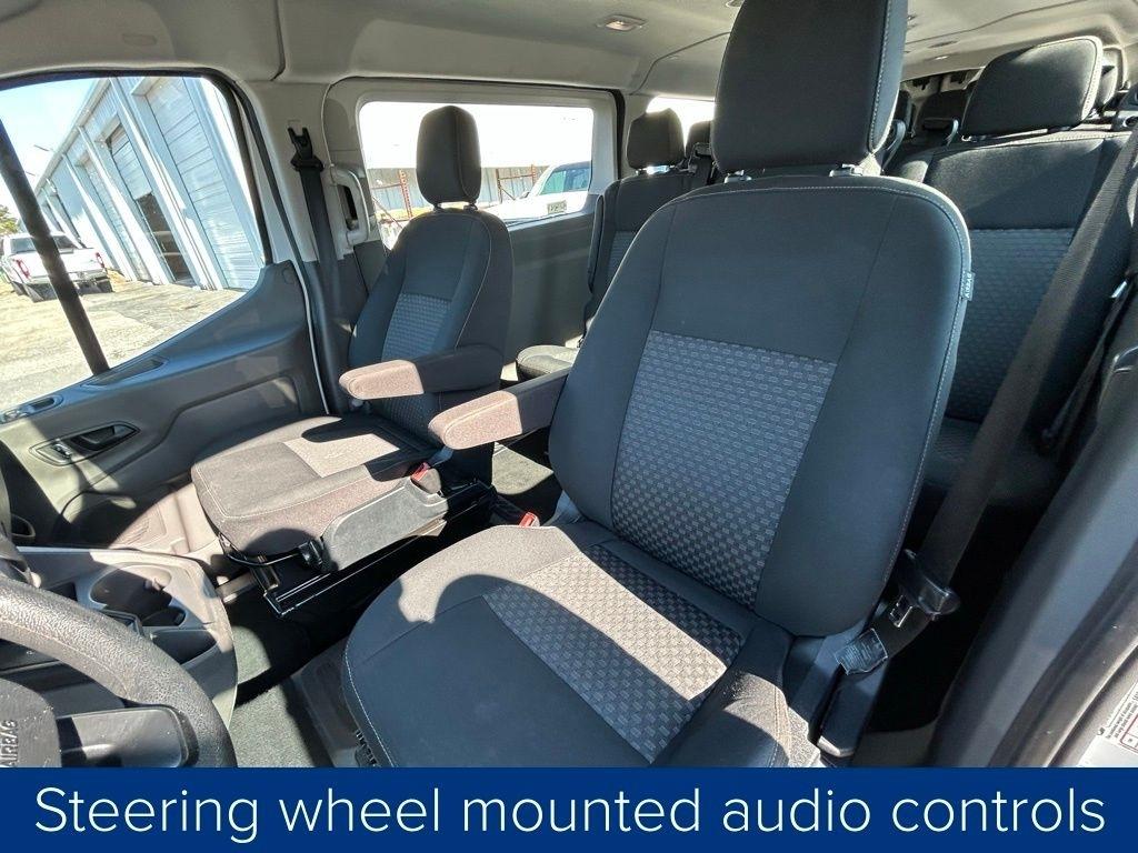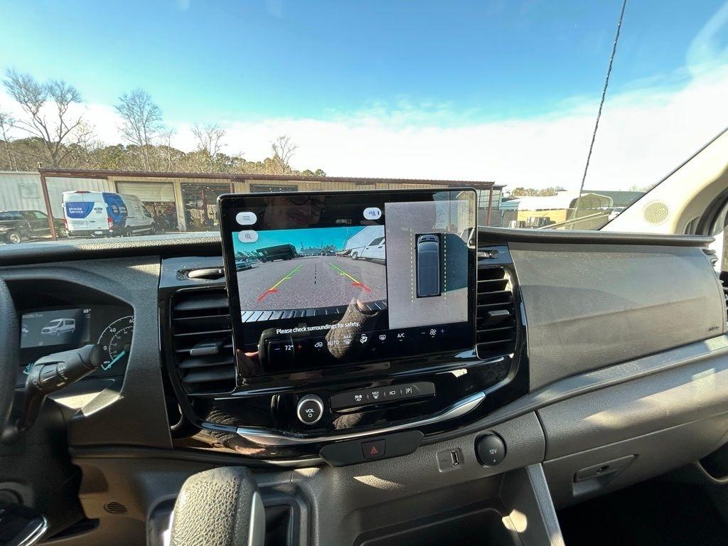The vehicle's interior is thoughtfully designed, with features like electronic air temperature control, cruise control, and a 6.1-inch color touchscreen with SYNC 4 and navigation. The 15-passenger seating configuration, along with the 360-degree camera and rear sensing system, make this van an ideal choice for transporting large groups or hauling cargo with ease.
