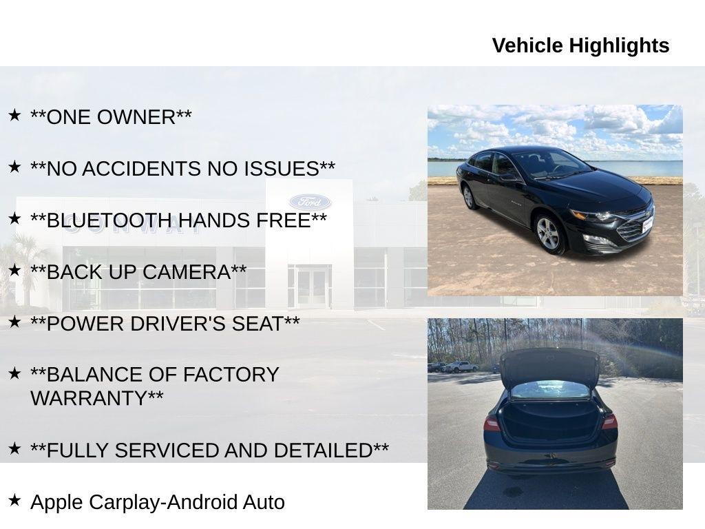 The interior of this Malibu is a true standout, with a host of premium features that elevate the driving experience. Enjoy the convenience of Bluetooth hands-free connectivity, the added security of a backup camera, and the comfort of a power driver's seat. Stay connected with the Chevrolet Infotainment 3 system, complete with Apple CarPlay and Android Auto integration.