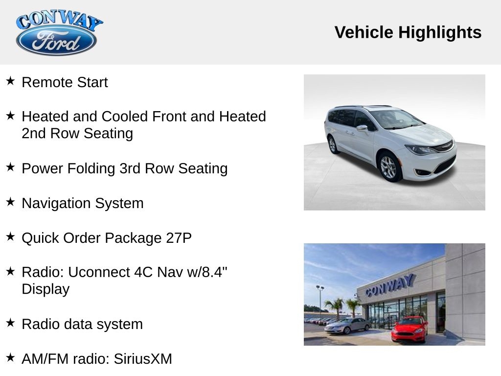 **NO ACCIDENTS NO ISSUES**, **BLUETOOTH HANDS FREE**, **BACK UP CAMERA**, **LEATHER INTERIOR**, **BLIND SPOT MONITOR**, **NAVIGATION**, **FULLY SERVICED AND DETAILED**, Apple Carplay-Android Auto, Remote Start, Heated and Cooled Front and Heated 2nd Row Seating, Power Folding 3rd Row Seating, Pacifica Limited, 4D Passenger Van, 3.6L V6 24V VVT, FWD, Bright White Clearcoat, Deep Mocha/Black/Dp Mocha Leather, 18" x 7.5" Painted Aluminum Wheels, 4-Wheel Disc Brakes, ABS brakes, Air Conditioning, AM/FM radio: SiriusXM, Apple CarPlay/Android Auto, Automatic temperature control, Brake assist, Bumpers: body-color, Compass, Deep Mocha Seats, Delay-off headlights, Driver door bin, Driver vanity mirror, Dual front impact airbags, Dual front side impact airbags, Dual Zone Auto A/C, Electronic Stability Control, Four wheel independent suspension, Front fog lights, Front reading lights, Fully automatic headlights, Garage door transmitter, Heated door mirrors, Heated Rear Seats, Heated Seats, Heated steering wheel, Knee airbag, Low tire pressure warning, Memory seat, Navigation System, Outside temperature display, Panic alarm, ParkView Rear Back-Up Camera, Passenger door bin, Passenger seat mounted armrest, Power door mirrors, Power driver seat, Power Folding 3rd row seats: split-bench, Power Liftgate, Power passenger seat, Power windows, Premium Leather Trim Bucket Seats, Quick Order Package 27P, Radio data system, Radio: Uconnect 4C Nav w/8.4" Display, Rear air conditioning, Rear window defroster, Rear window wiper, Reclining 3rd row seat, Remote keyless entry, Spoiler, Steering wheel mounted audio controls, Tachometer, Telescoping steering wheel, Touring Suspension, Trip computer, Ventilated front seats.