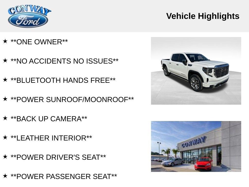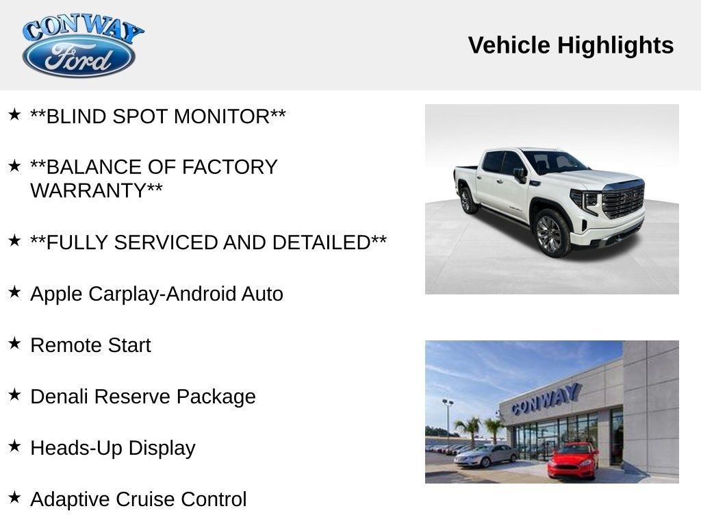 With its impressive capabilities, luxurious appointments, and well-maintained condition, this 2023 GMC Sierra 1500 Denali is an exceptional opportunity for the discerning truck buyer. Experience the power, comfort, and technology that this remarkable vehicle has to offer. Schedule a test drive today and discover why the Sierra Denali is the ultimate full-size truck.