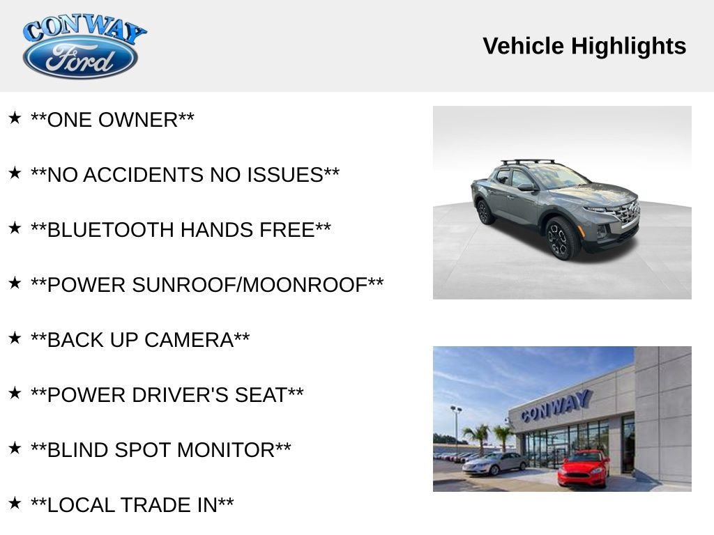 As a one-owner vehicle with no accidents or issues, this 2022 Hyundai Santa Cruz SEL Premium represents an exceptional opportunity for the discerning buyer. With its exceptional features, impressive performance, and exceptional condition, this compact truck is poised to exceed your expectations and deliver a driving experience that will leave a lasting impression.