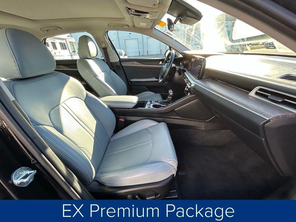The EX Premium Package elevates this K5 with a Bose Premium Audio system, Smart Cruise Control, Surround View Monitor, and a host of advanced safety features. The Ash Blue Interior Package adds a touch of elegance to the cabin, while the balance of the factory warranty provides peace of mind.