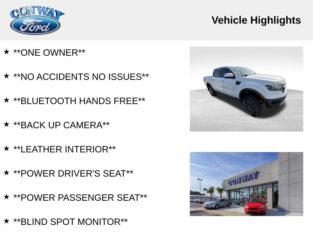This Ranger Lariat is powered by a potent EcoBoost 2.3L I4 GTDi DOHC Turbocharged VCT engine paired with a smooth-shifting 10-Speed Automatic transmission and capable 4WD system. With an impressive 19 MPG in the city and 24 MPG on the highway, this truck delivers both power and efficiency.