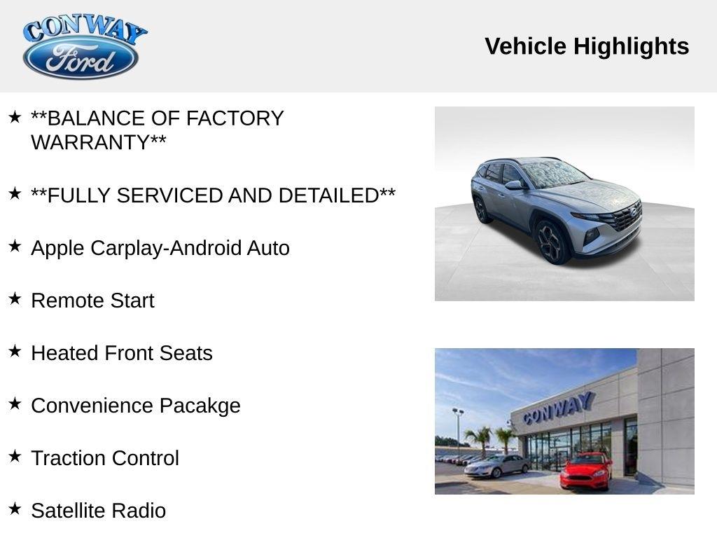 Don't miss the opportunity to make this exceptional Tucson SEL your own. Visit our showroom today and experience the power, comfort, and convenience that this remarkable SUV has to offer. We're confident that once you take it for a test drive, you'll be convinced that this Tucson is the perfect fit for your lifestyle.