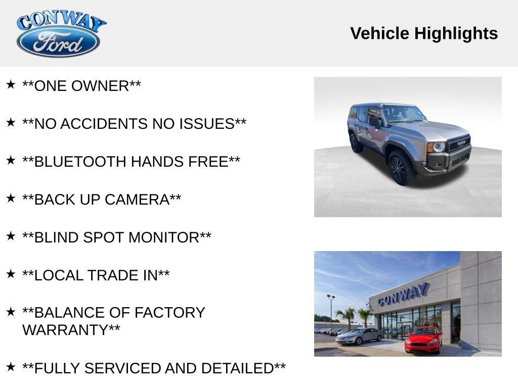 Beneath the sleek, silver exterior lies a powerful 2.4L 4-Cylinder engine, mated to an 8-Speed Automatic transmission and a robust 4WD system. With an impressive 22 MPG in the city and 25 MPG on the highway, this Land Cruiser delivers exceptional fuel efficiency without sacrificing its renowned off-road capabilities.