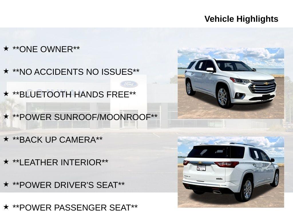 Discover the ultimate family-friendly SUV with the 2018 Chevrolet Traverse High Country. This meticulously maintained, one-owner vehicle boasts a stunning White exterior and a spacious, premium interior that will elevate your driving experience.