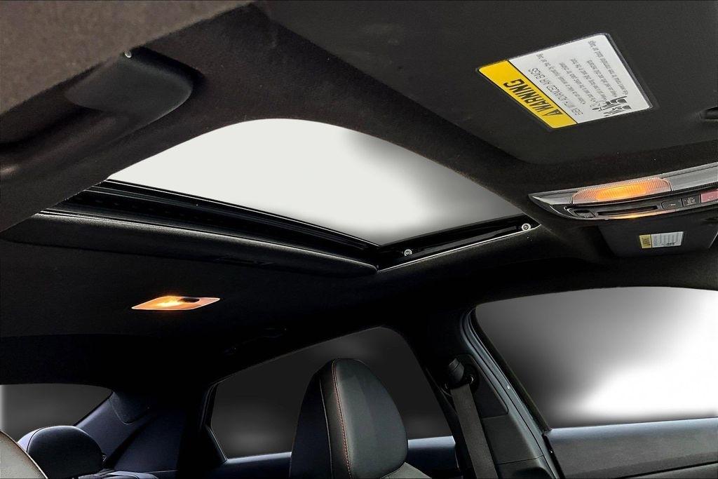 As you explore the cabin, you'll be greeted by a spacious and well-appointed interior, complete with premium Harman Kardon audio, dual-zone automatic climate control, and a host of other thoughtful amenities. The combination of leather and cloth seating surfaces, along with the heated front sport bucket seats, ensures both comfort and style.