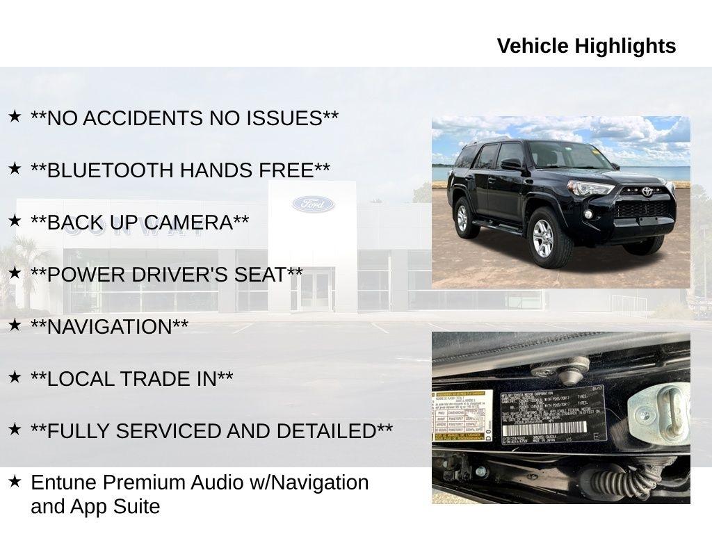 This 4Runner boasts an array of premium features that will elevate your driving experience. The Entune Premium Audio system with Navigation and App Suite keeps you connected and entertained, while the backup camera and power driver's seat provide added convenience and comfort. The third-row seating offers versatility, allowing you to accommodate more passengers or maximize cargo space as needed.