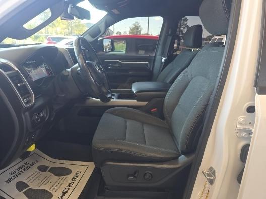 The exterior of this Ram 1500 is sleek and stylish, with a bold white paint job that commands attention. The Sport Appearance Package adds an extra touch of sophistication, with body-colored accents and premium wheels that give the truck a refined, yet rugged look.