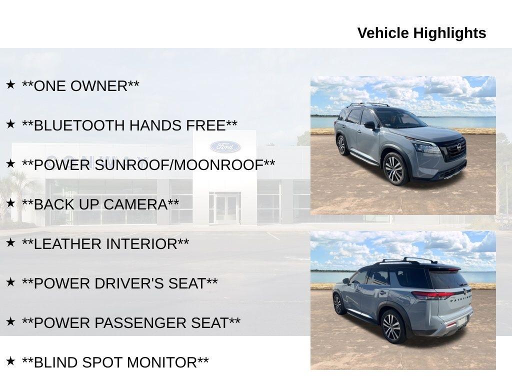 Whether you're embarking on a family road trip or navigating the daily commute, the 2024 Nissan Pathfinder Platinum is the epitome of sophistication and capability. Experience the difference for yourself and schedule a test drive today. We're confident this exceptional SUV will exceed your expectations and become an indispensable part of your life.