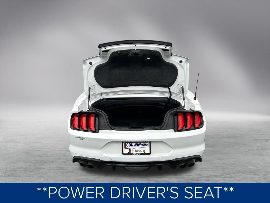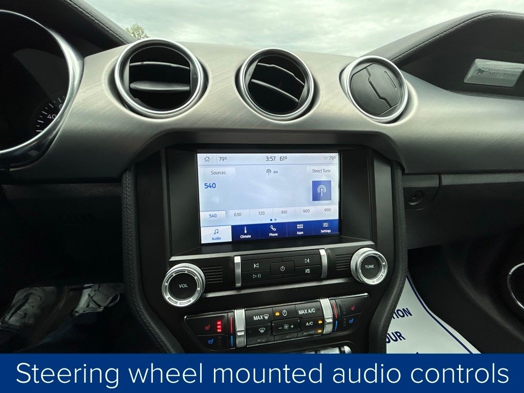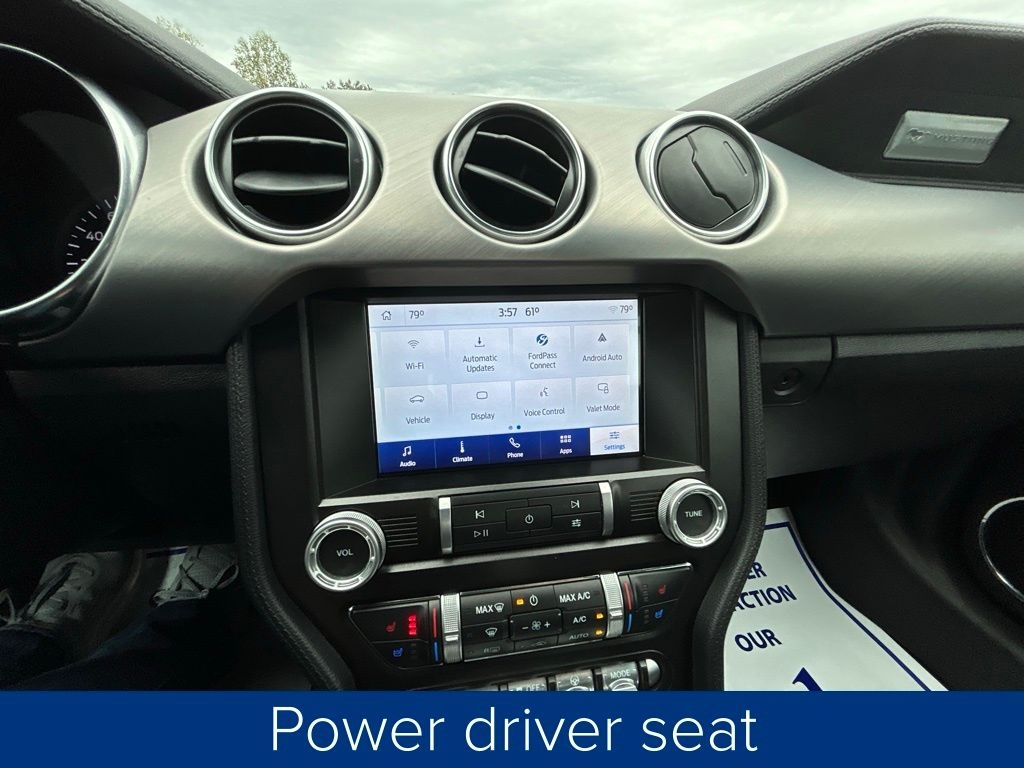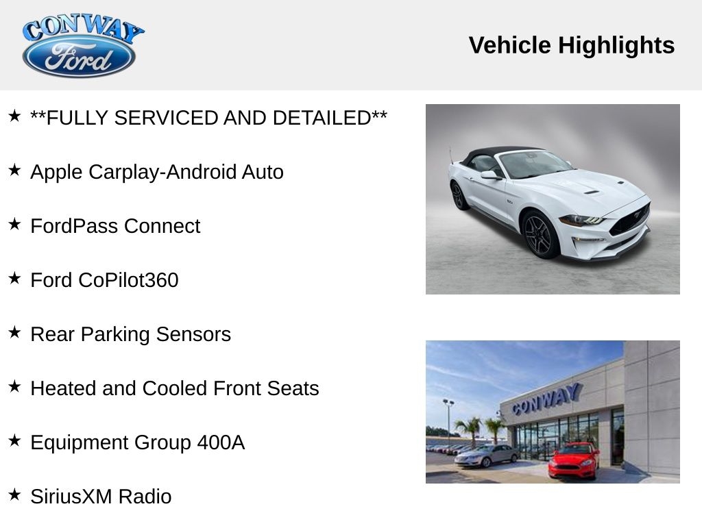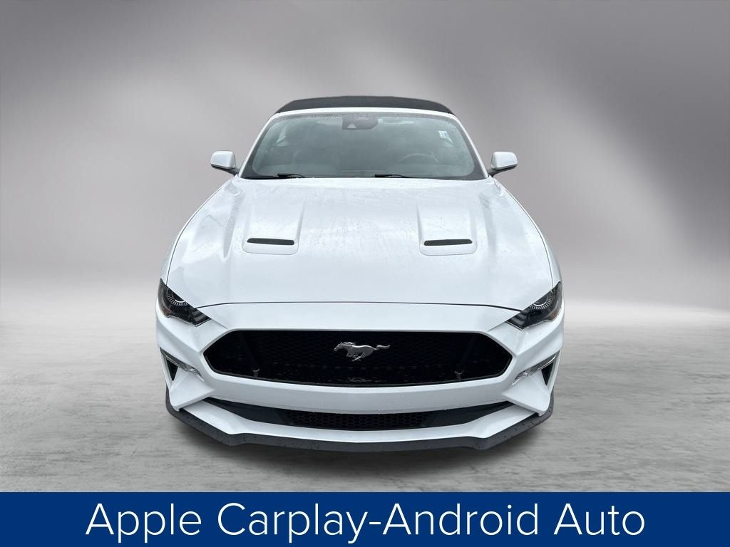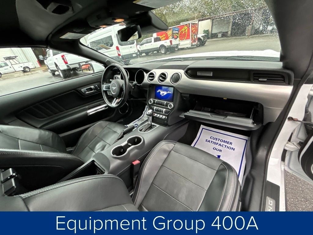 **NO ACCIDENTS NO ISSUES**, **BLUETOOTH HANDS FREE**, **BACK UP CAMERA**, **LEATHER INTERIOR**, **POWER DRIVER'S SEAT**, **POWER PASSENGER SEAT**, **LOCAL TRADE IN**, **BALANCE OF FACTORY WARRANTY**, **FULLY SERVICED AND DETAILED**, Apple Carplay-Android Auto, FordPass Connect, Ford CoPilot360, Rear Parking Sensors, Heated and Cooled Front Seats, Mustang GT Premium, 2D Convertible, 5.0L V8 Ti-VCT, Oxford White, Ebony w/Leather-Trimmed Bucket Seats, 3.15 Limited Slip Rear Axle Ratio, 4-Wheel Disc Brakes, ABS brakes, Air Conditioning, AM/FM radio: SiriusXM, Auto High-beam Headlights, Automatic temperature control, Brake assist, Bumpers: body-color, Climate Controlled Heated/Cooled Front Seats, Compass, Convertible roof lining, Cruise Control, Delay-off headlights, Driver door bin, Driver vanity mirror, Dual front impact airbags, Dual front side impact airbags, Dual Zone Auto A/C, Electronic Stability Control, Equipment Group 400A, Exterior Parking Camera Rear, Four wheel independent suspension, Front fog lights, Front reading lights, Fully automatic headlights, Garage door transmitter, Glass rear window, Heated door mirrors, Heated Seats, Knee airbag, Leather Shift Knob, Leather-Trimmed Bucket Seats, Low tire pressure warning, Outside temperature display, Passenger door bin, Passenger vanity mirror, Power convertible roof, Power door mirrors, Power driver seat, Power windows, Radio data system, Rain sensing wipers, Rear Parking Sensors, Rear window defroster, Remote keyless entry, SiriusXM Radio, Spoiler, Steering wheel mounted audio controls, SYNC 3 Communications & Entertainment System, Tachometer, Telescoping steering wheel, Traction control, Trip computer, Variably intermittent wipers, Wheels: 18" x 8" Machined-Face Aluminum.