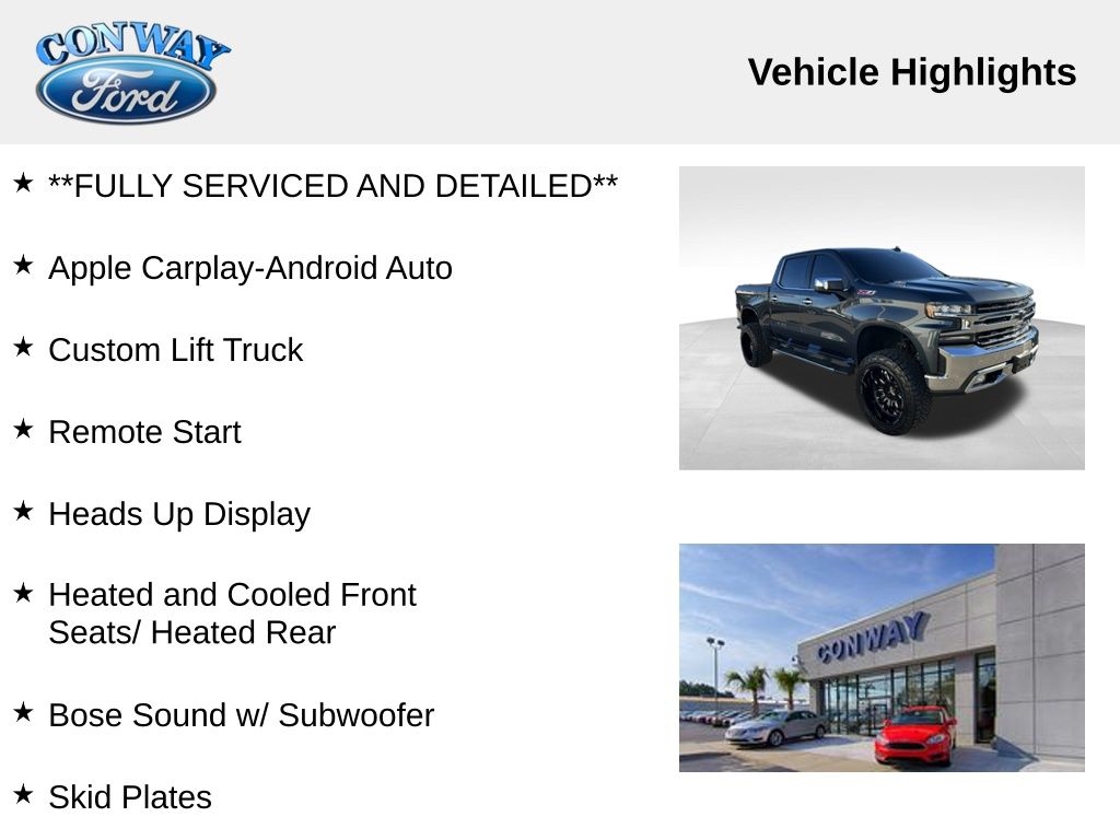 **NO ACCIDENTS NO ISSUES**, **BLUETOOTH HANDS FREE**, **POWER SUNROOF/MOONROOF**, **BACK UP CAMERA**, **LEATHER INTERIOR**, **POWER DRIVER'S SEAT**, **POWER PASSENGER SEAT**, **NAVIGATION**, **FULLY SERVICED AND DETAILED**, Apple Carplay-Android Auto, Custom Lift Truck, Remote Start, Heads Up Display, Heated and Cooled Front Seats/ Heated Rear, Bose Sound w/ Subwoofer, Skid Plates, Diesel Power, Silverado 1500 LTZ, 4D Crew Cab, 3.0L I6, 4WD, Shadow Gray Metallic, 10-Way Power Driver Seat w/Lumbar, 10-Way Power Passenger Seat Adjuster w/Lumbar, 12-Volt Rear Auxiliary Power Outlet, 120-Volt Bed Mounted Power Outlet, 120-Volt Instrument Panel Power Outlet, 15" Diagonal Multicolor Head-Up Display, 2 USB Ports (First Row), 2nd Row Heated Outboard Seats, 4-Wheel Disc Brakes, 4.2" Diagonal Color Display Driver Info Center, 4G LTE Wi-Fi Hot Spot Capable, 6-Speaker Audio System, 8" Driver Information Center, ABS brakes, Adaptive Cruise Control - Camera, Advanced Trailering System, Air Conditioning, Apple CarPlay/Android Auto, Auto-Dimming Inside Rear-View Mirror, Automatic Emergency Braking, Automatic temperature control, Auxiliary External Transmission Oil Cooler, Bed View Camera, Bluetooth® For Phone, Brake assist, Chevrolet Connected Access Capable, Chrome Grille, Chrome Mirror Caps, Color-Keyed Carpeting Floor Covering, Compass, Deep-Tinted Glass, Delay-off headlights, Driver door bin, Driver Memory, Driver vanity mirror, Dual Exhaust w/Polished Outlets, Dual front impact airbags, Dual front side impact airbags, Dual Zone Auto A/C, Electric Rear-Window Defogger, Electrical Lock Control Steering Column, Electronic Stability Control, EZ Lift Power Lock & Release Tailgate, Floor Mounted Center Console, Following Distance Indicator, Forward Collision Alert, Front Bucket Seats, Front fog lights, Front Frame-Mounted Black Recovery Hooks, Front LED Fog Lamps, Front Pedestrian Braking, Front reading lights, Front Rubberized Vinyl Floor Mats, Front wheel independent suspension, Fully automatic headlights, HD Radio, HD Rear Vision Camera, HD Surround Vision w/2 Trailer View Camera Provisions, Heated door mirrors, Heated Driver & Front Outboard Passenger Seats, Heated Steering Wheel, Heated steering wheel, Heavy-Duty Rear Locking Differential, Hill Descent Control, Hitch Guidance, Hitch Guidance w/Hitch View, Integrated Trailer Brake Controller, IntelliBeam Automatic High Beam On/Off, Keyless Open & Start, Lane Change Alert w/Side Blind Zone Alert, Lane Keep Assist w/Lane Departure Warning, Leather Wrapped Steering Wheel, LED Cargo Area Lighting, Low tire pressure warning, LTZ Convenience Package, LTZ Convenience Package II, LTZ Plus Package, Manual Tilt/Telescoping Steering Column, Memory seat, Navigation System, Off-Road Suspension, OnStar & Chevrolet Connected Services Capable, Outside Heated Power-Adjustable Mirrors, Outside temperature display, Panic alarm, Passenger door bin, Passenger vanity mirror, Perimeter Lighting, Power Door Locks, Power door mirrors, Power driver seat, Power Front Passenger Windows w/Express Up/Down, Power Front Windows w/Driver Express Up/Down, Power Rear Windows w/Express Down, Power Sliding Rear Window w/Rear Defogger, Power Sunroof, Power Tailgate, Power windows, Preferred Equipment Group 1LZ, Premium Bose 7-Speaker Sound System, Radio: Chevrolet Infotainment 3 Premium System, Rear Camera Mirror, Rear Cross Traffic Alert, Rear Dual USB Charging-Only Ports, Rear Rubberized-Vinyl Floor Mats, Rear step bumper, Rear Wheelhouse Liners, Remote keyless entry, Remote Vehicle Starter System, Safety Alert Seat, Safety Package, Safety Package II, SiriusXM w/360L, Steering Wheel Audio Controls, Steering wheel mounted audio controls, Steering Wheel Mounted Electronic Cruise Control, Tachometer, Technology Package, Telescoping steering wheel, Theft Deterrent System (Unauthorized Entry), Traction control, Trailering Package, Trip computer, Ultrasonic Front & Rear Park Assist, Universal Home Remote, Up-Level Rear Seat w/Sto