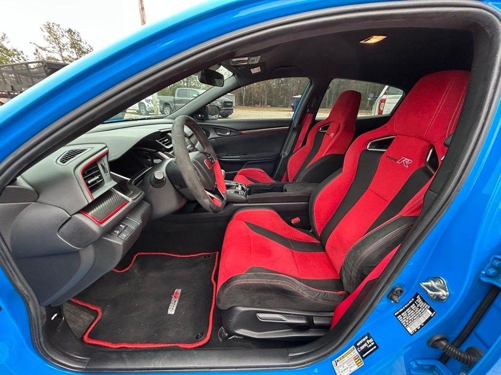The interior of the Civic Type R is just as impressive, with supportive and stylish Suede-Effect Fabric Seating Surfaces, dual-zone automatic climate control, and a sleek, driver-focused layout. The spacious cabin and versatile cargo area make this high-performance hatchback a practical choice for your daily commute or weekend adventures.