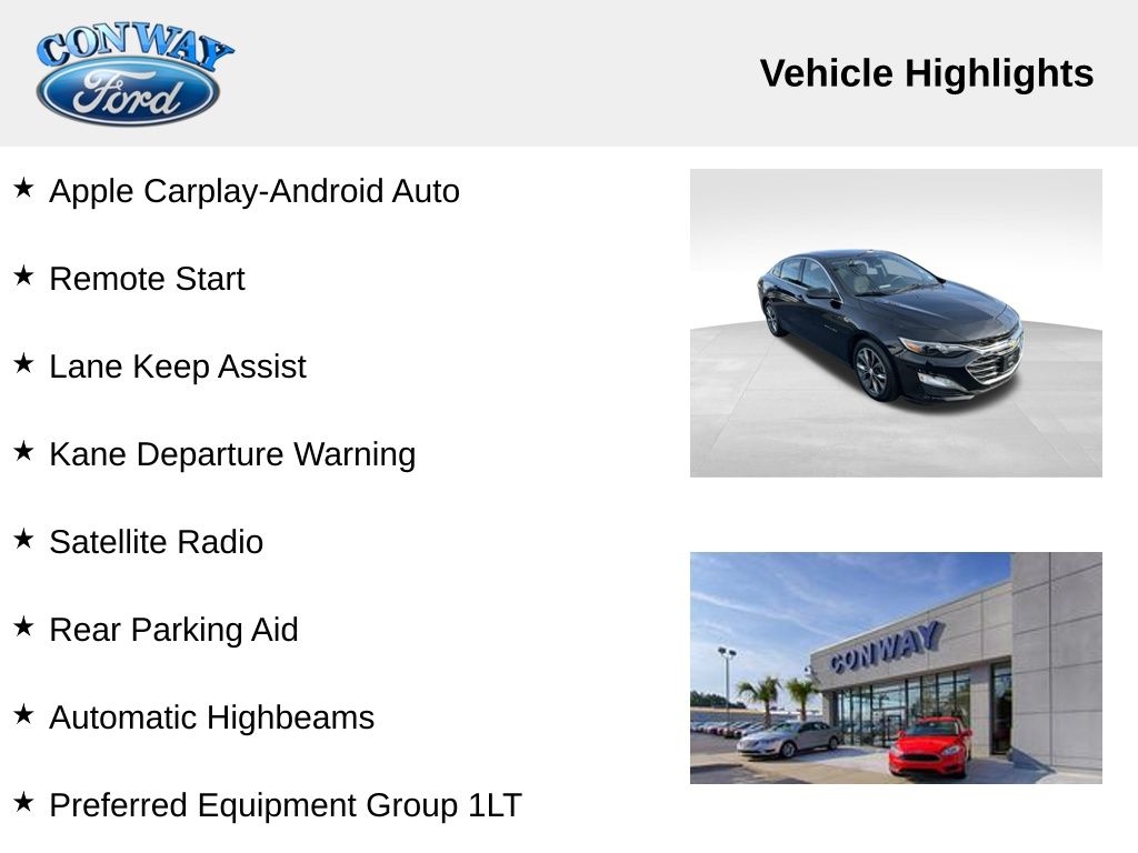 This Malibu LT 1LT is more than just a pretty face. Under the hood, you'll find a 1.5L DOHC engine paired with a smooth-shifting CVT transmission, delivering an impressive 28 city / 36 highway MPG. The responsive handling and four-wheel independent suspension ensure a confident and comfortable driving experience, whether navigating city streets or cruising the open highway.