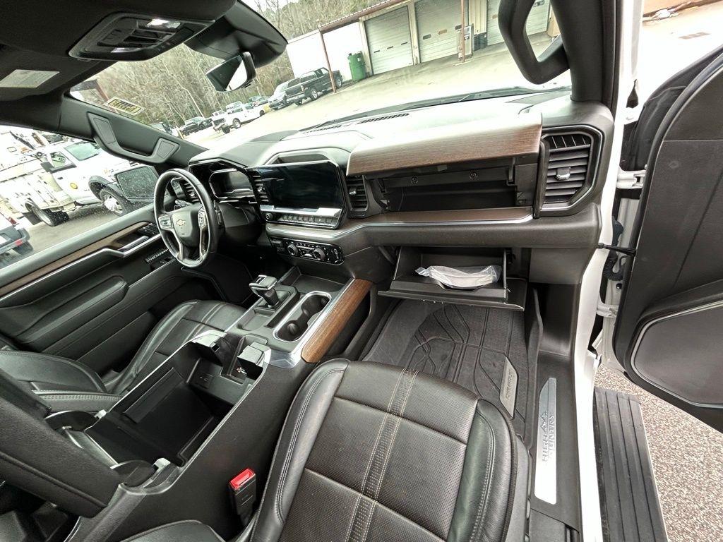 With its striking White exterior and a meticulously maintained interior, this Silverado High Country is a true head-turner. The chrome accents, power-retractable assist steps, and 22-inch painted aluminum wheels with chrome inserts add a touch of refined elegance, while the Chevytec spray-on bedliner and integrated trailer brake controller ensure this truck is ready for your toughest jobs.
