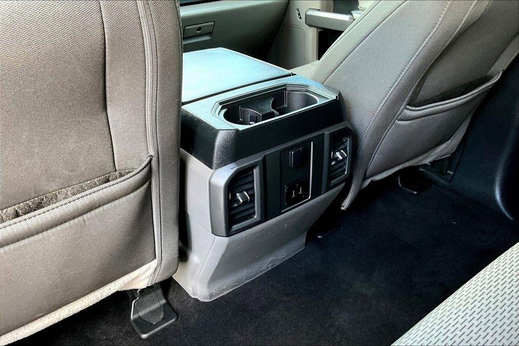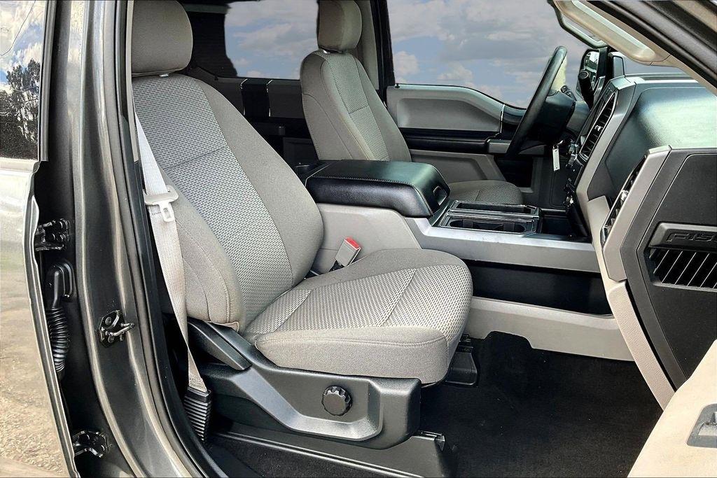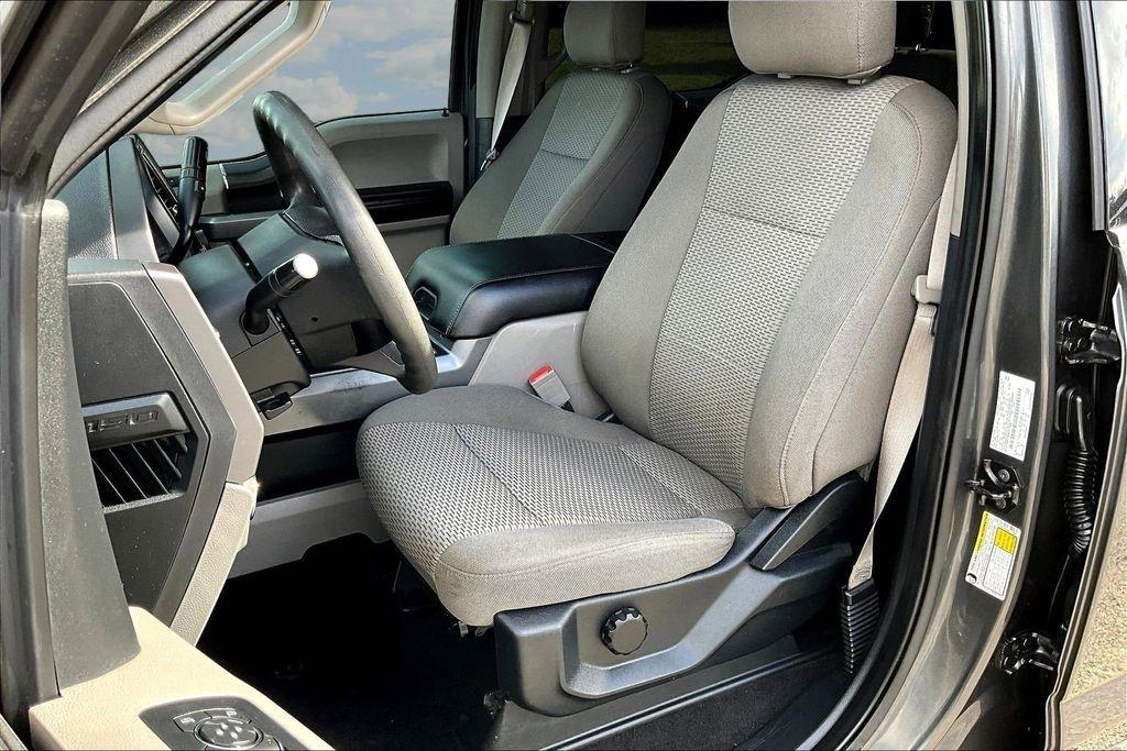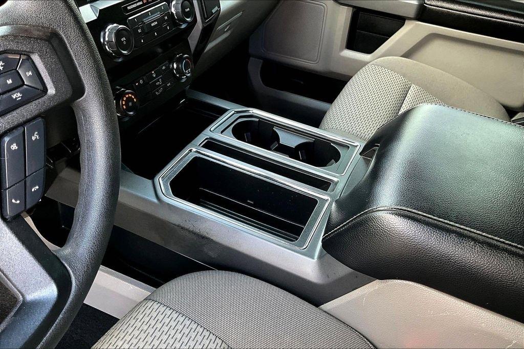The exterior of this F-150 XLT is finished in a sleek Gray color, complemented by chrome bumpers and 17-inch silver painted aluminum wheels. Step inside and you'll find a well-appointed interior with cloth 40/console/40 front seats, 4-way adjustable headrests, and a flow-through console with column shift.