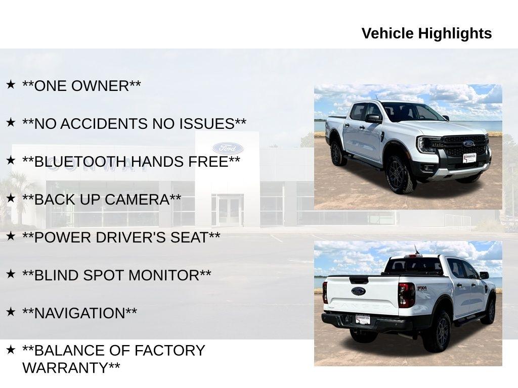 Discover the ultimate driving experience with this exceptional 2024 Ford Ranger XLT. Boasting a powerful EcoBoost 2.3L I4 engine and 4-wheel drive capability, this truck is ready to conquer any terrain with confidence. Meticulously maintained and detailed, this one-owner Ranger is a true gem, offering a wealth of premium features that will elevate your driving pleasure.