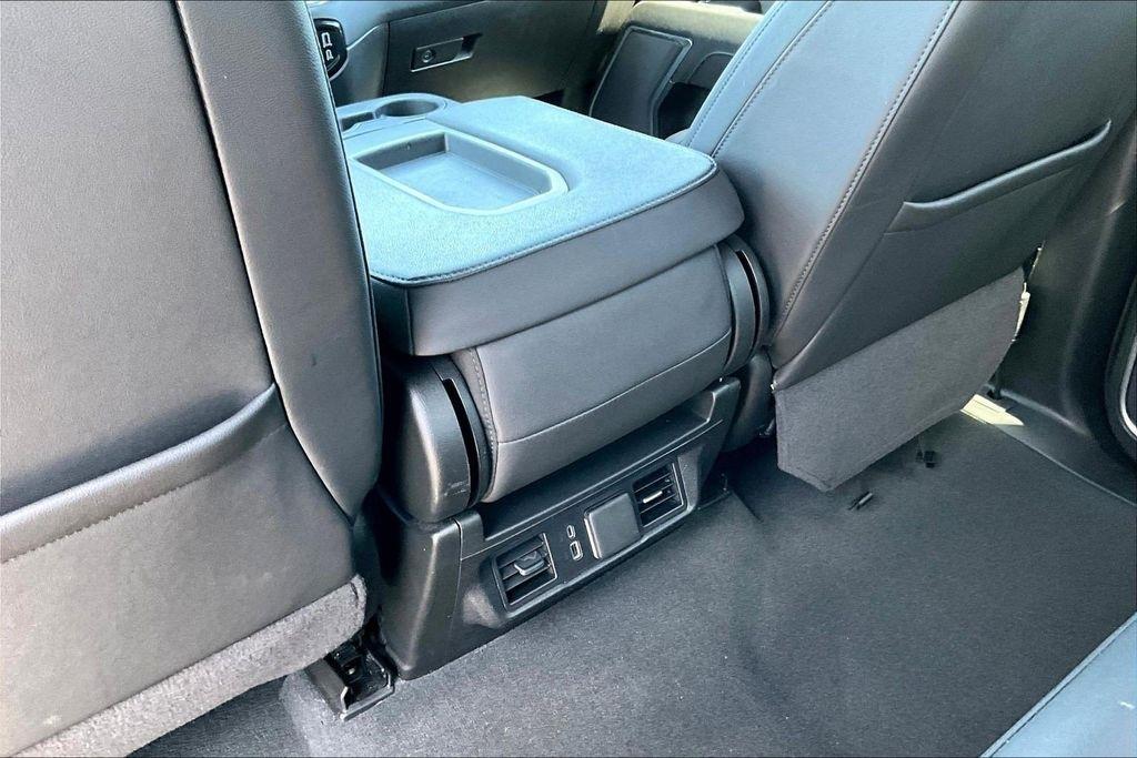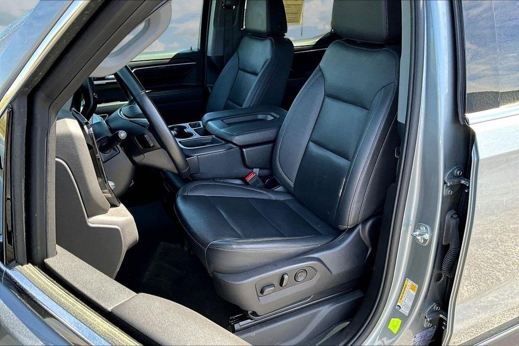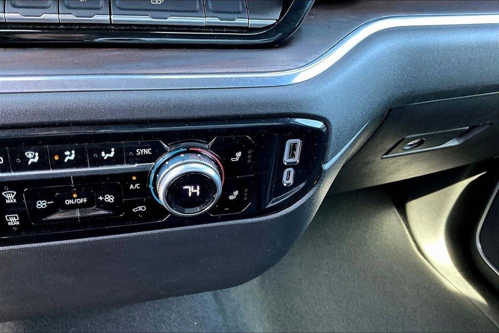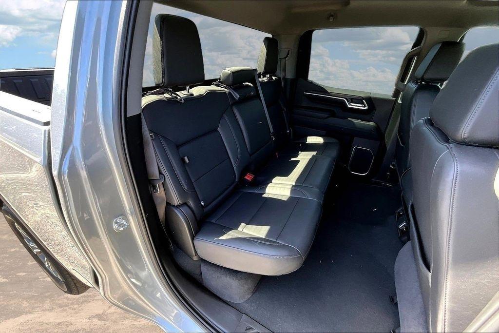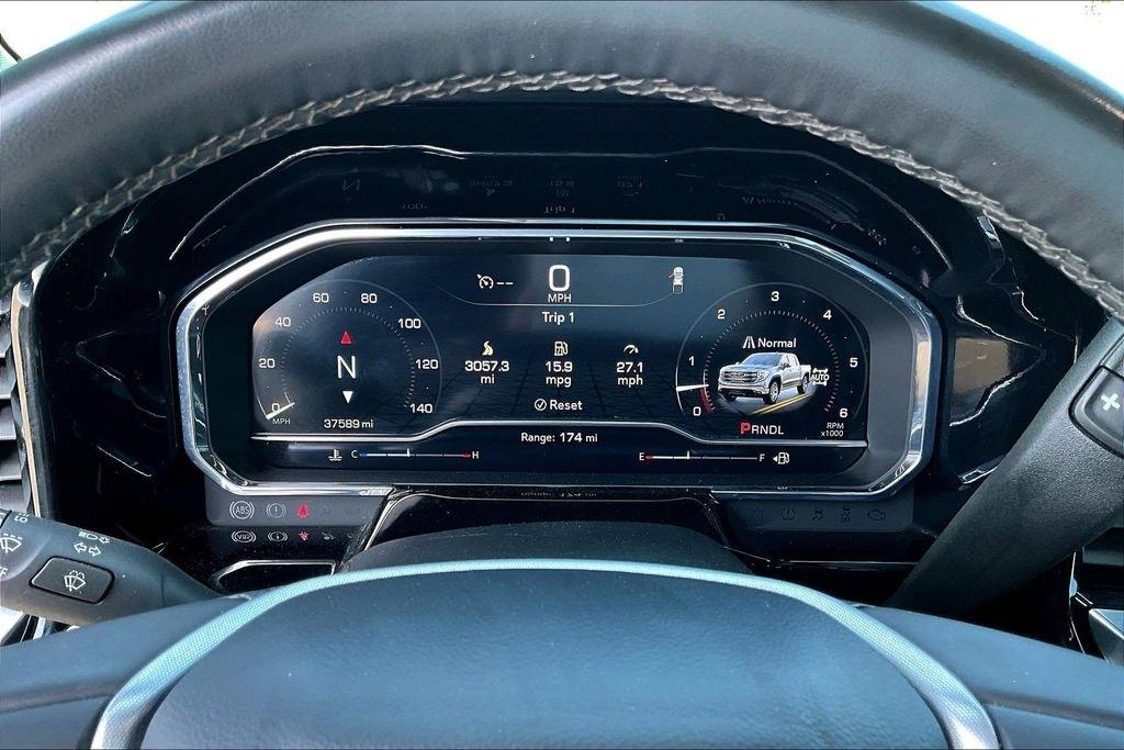 Comfort and convenience are paramount in this Sierra, with dual-zone automatic climate control, a heated steering wheel, and power-adjustable front seats with lumbar support. The leather-appointed seating and premium trim elevate the interior, creating a refined and luxurious environment.