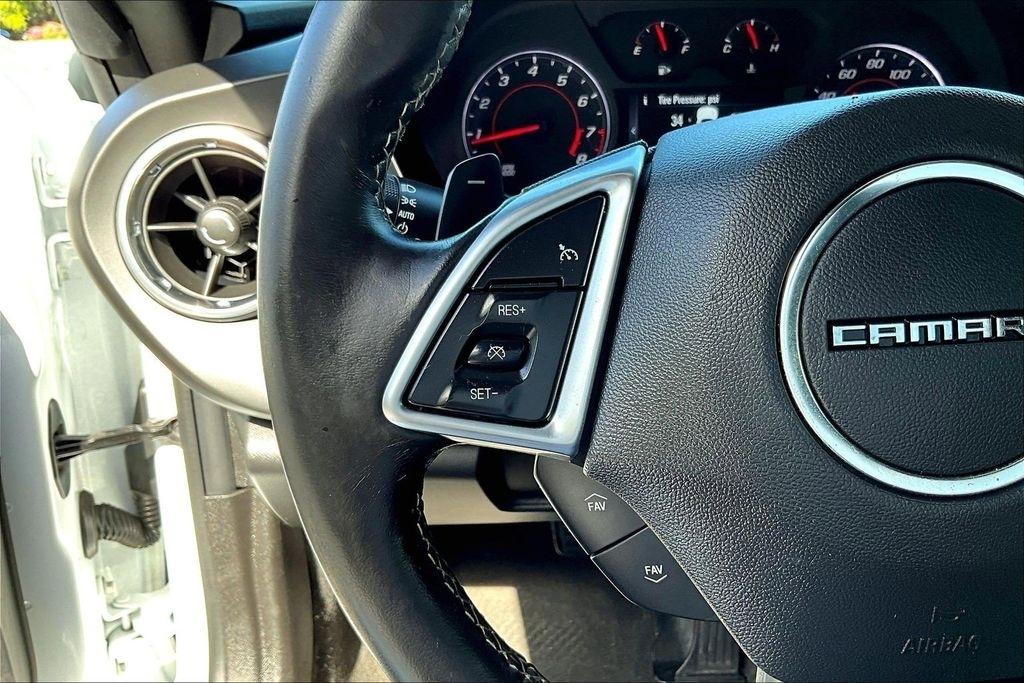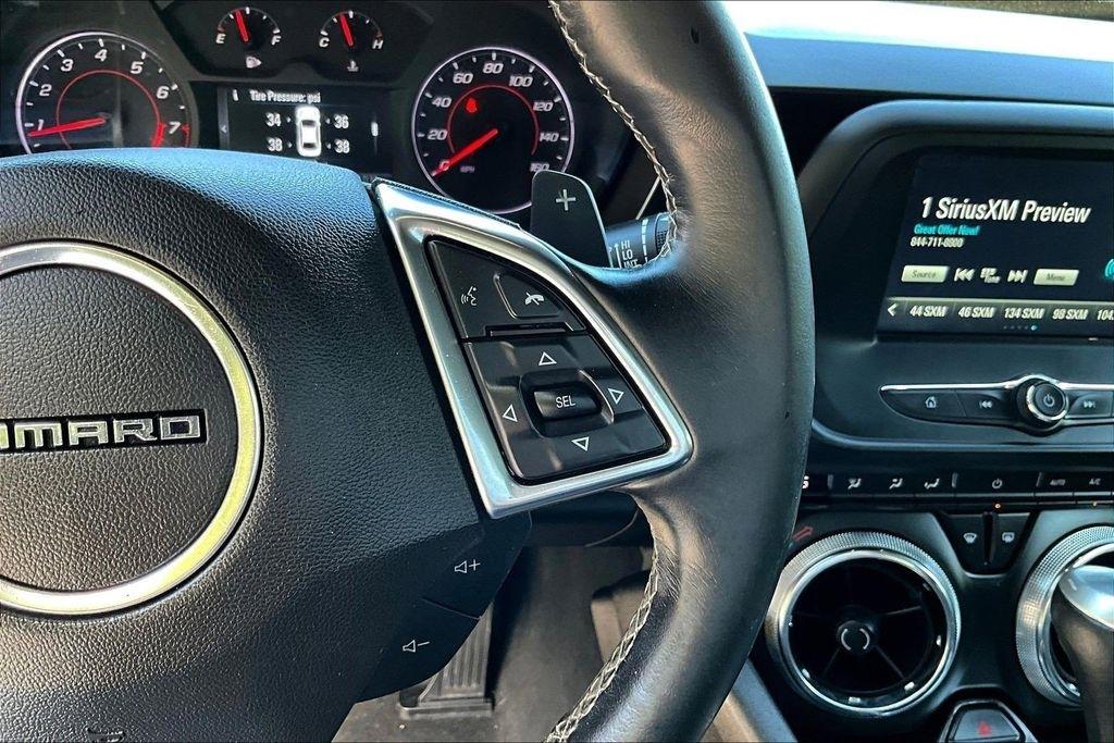 This Camaro's impressive 22 city/31 highway MPG rating means you can enjoy the open road without constant trips to the gas station. The sport-tuned suspension and traction control provide a dynamic and confident driving experience, while the 6-speaker audio system with SiriusXM satellite radio keeps you entertained.