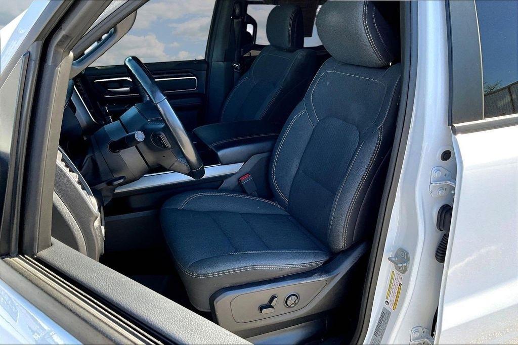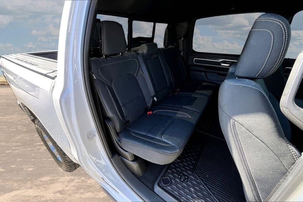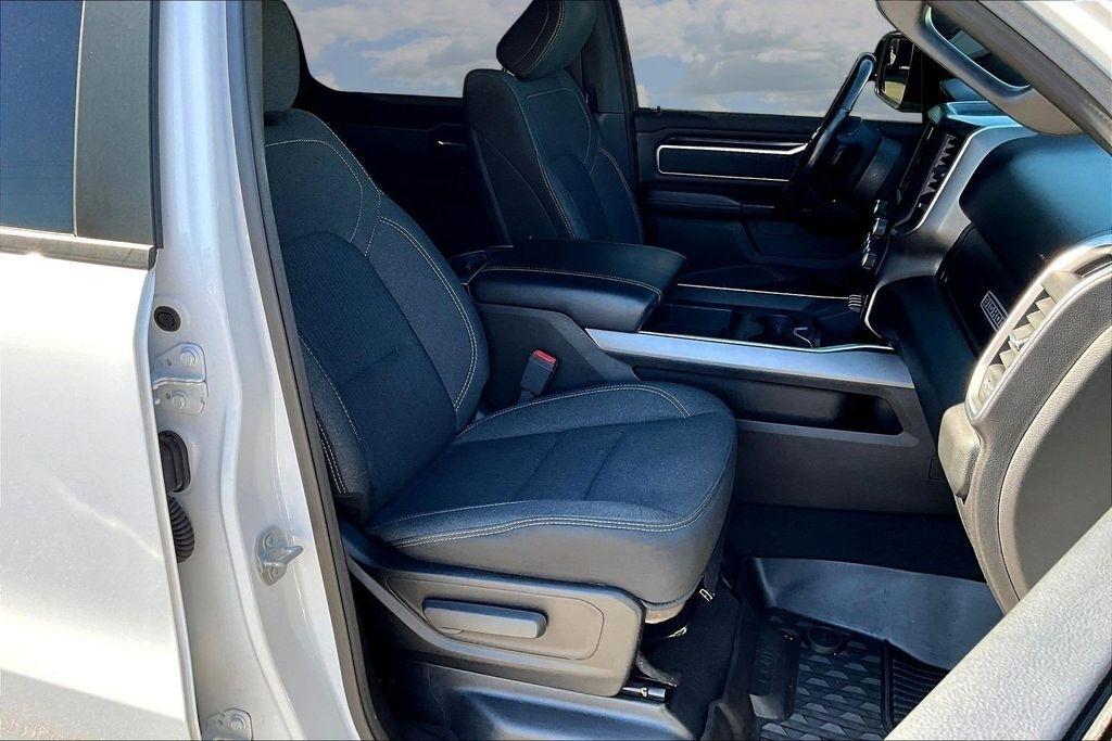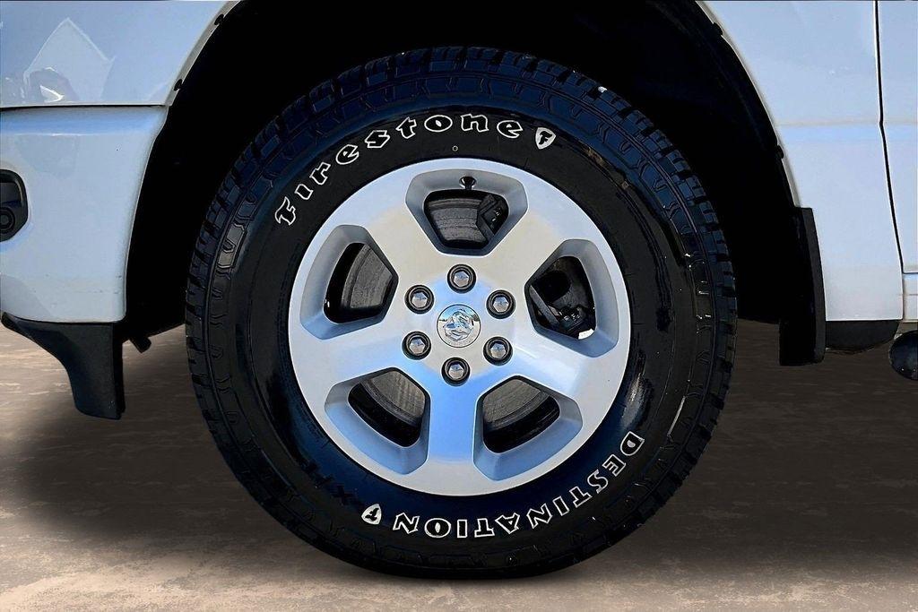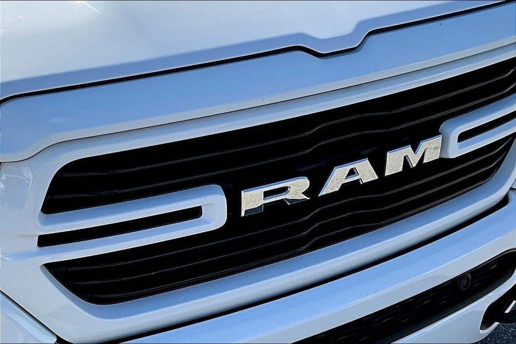 The exterior of this Ram 1500 is sleek and stylish, with a bold white paint job that commands attention. The Sport Appearance Package adds an extra touch of sophistication, with body-colored accents and premium wheels that give the truck a refined, yet rugged look.