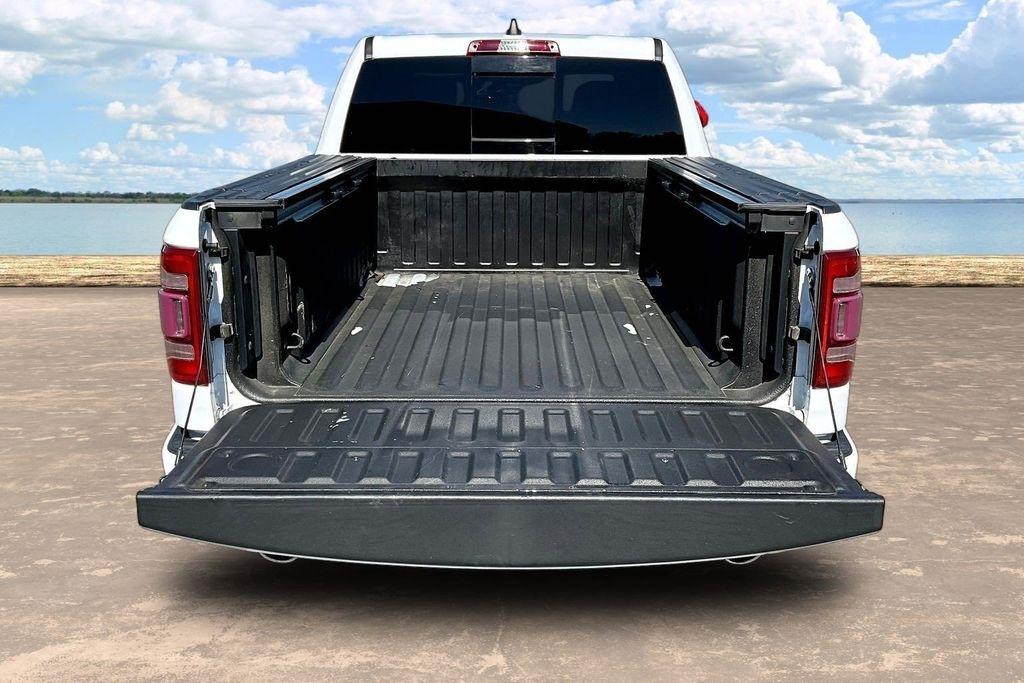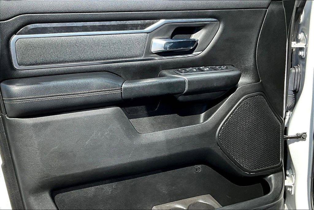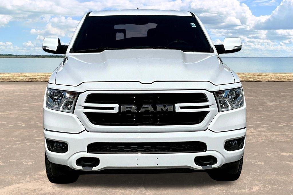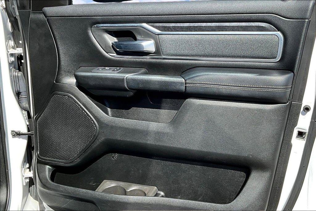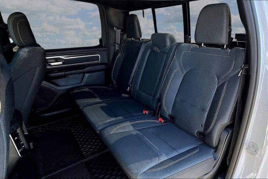 The exterior of this Ram 1500 is sleek and stylish, with a bold white paint job that commands attention. The Sport Appearance Package adds an extra touch of sophistication, with body-colored accents and premium wheels that give the truck a refined, yet rugged look.